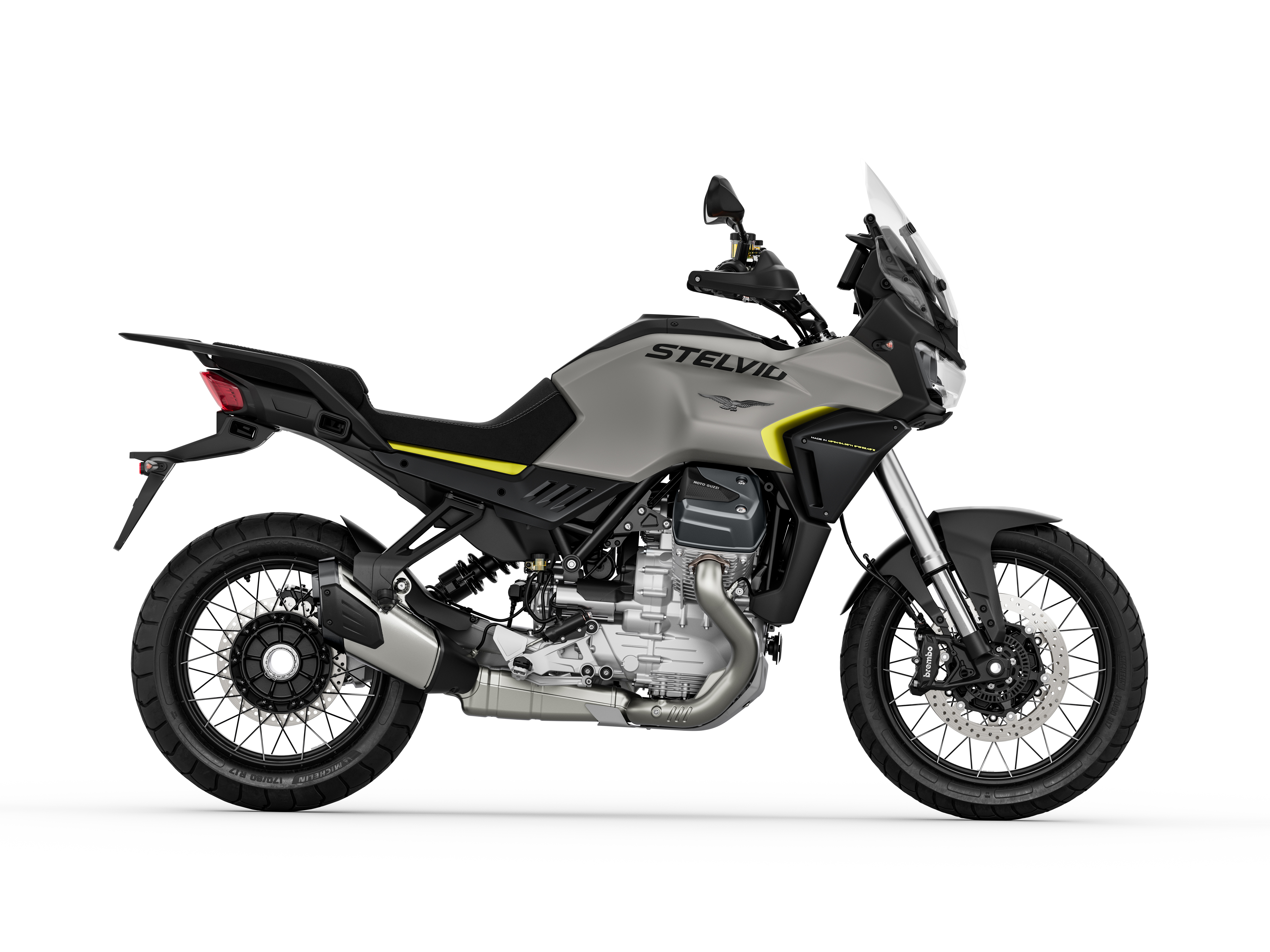 MOTO GUZZI STELVIO : NOUVEAUX GRAPHISMES LA STELVIO EST UNE MOTO ON-OFF ROAD AU CARACTÈRE AUTHENTIQUE ET AUDACIEUX, CONÇUE À PARTIR DE LA PLATEFORME TECHNIQUE LA PLUS AVANCÉE DE MOTO GUZZI. LES PERFORMANCES OFFERTES PAR LE MOTEUR BICYLINDRE COMPACT, LE CHÂSSIS ÉPOUSTOUFLANT ET LE PACK DE CONTRÔLE D’ASSISTANCE À LA CONDUITE ÉLECTRONIQUE EN FONT L’UNE DES MOTOS D’AVENTURE LES PLUS AVANCÉES TECHNOLOGIQUEMENT SUR LE MARCHÉ, TANDIS QUE LE SYSTÈME D’ASSISTANCE AU CONDUCTEUR P.F.F. DÉVELOPPÉE PAR « PIAGGIO FAST FORWARD » GARANTIT QUE LA MOTO GUZZI STELVIO EST PLUS SÛRE DANS TOUTES LES SITUATIONS. POUR 2026, LA STELVIO PRÉSENTE DE NOUVEAUX GRAPHISMES INSPIRÉS DE L’AVENTURE La Stelvio est la moto on-off de Moto Guzzi dédiée au voyage et à l’aventure. Basée sur une plateforme technique de pointe, elle est la seule moto de sa catégorie à être équipée de série d’une transmission par arbre à cardan et d’un pare-brise réglable électriquement. Le cœur de la conception est le moteur compact amélioré : offrant les plus hauts niveaux de performance, il présente un design et une architecture
