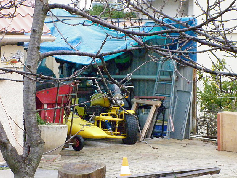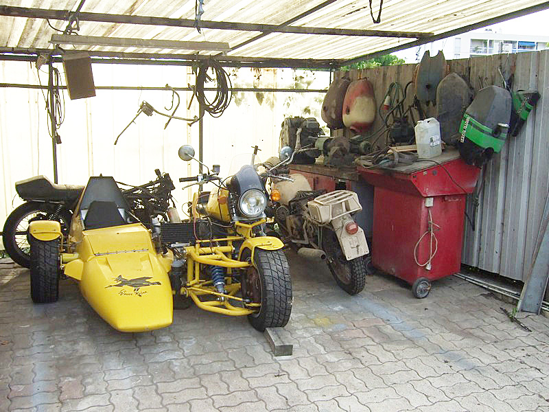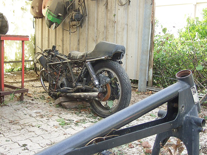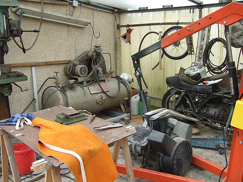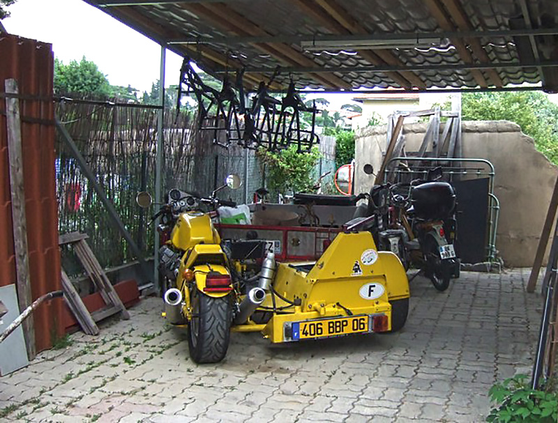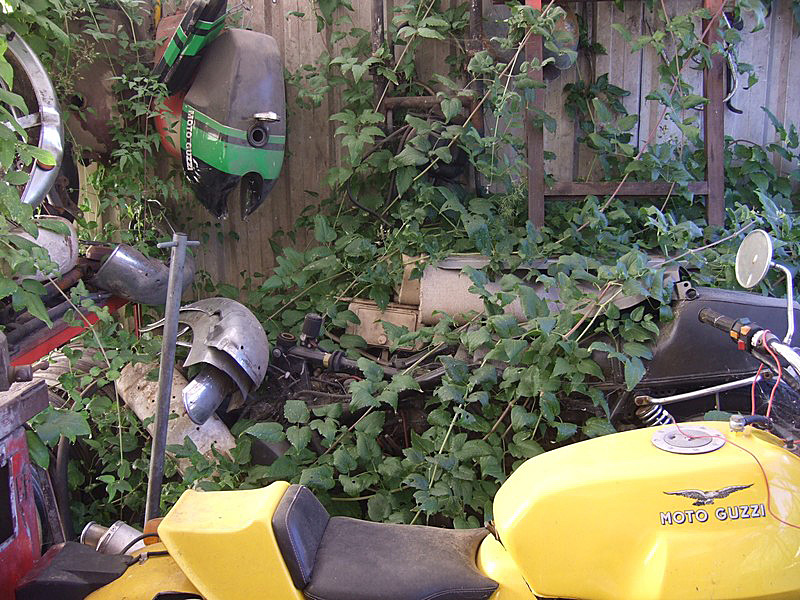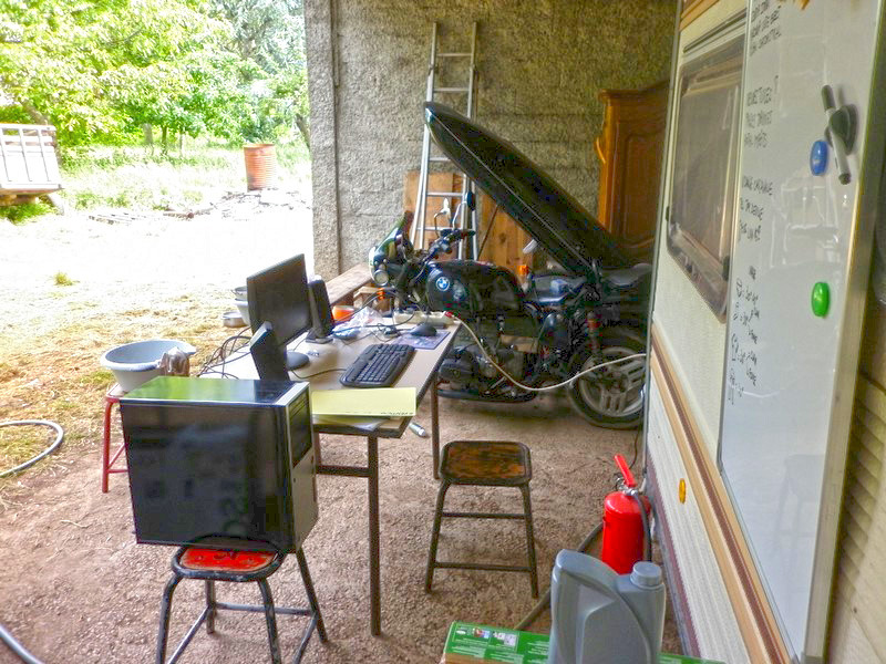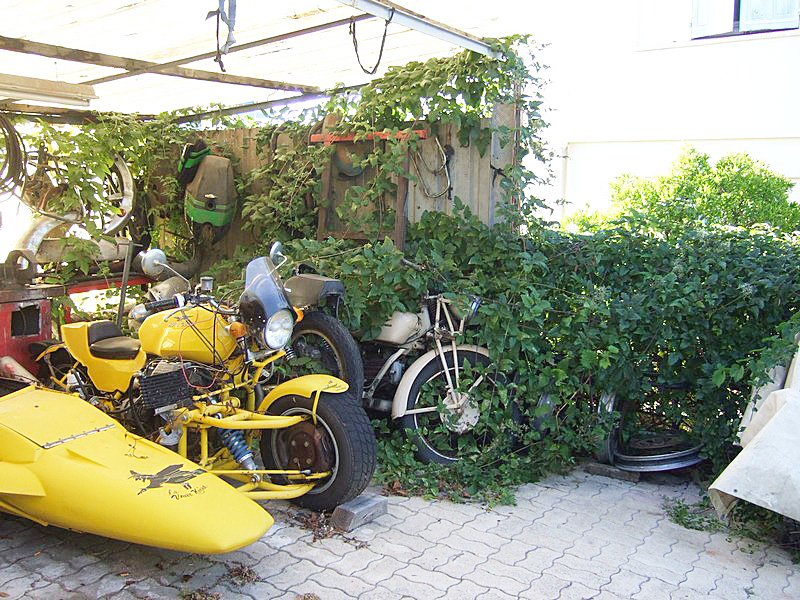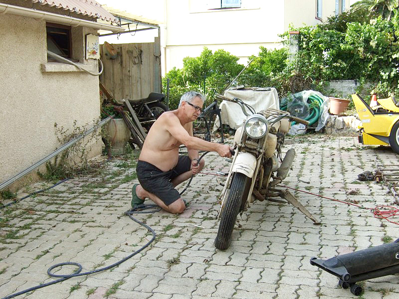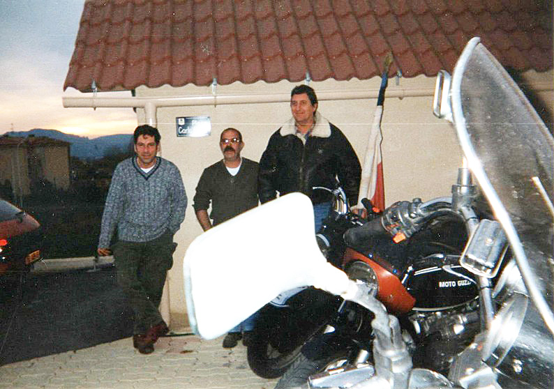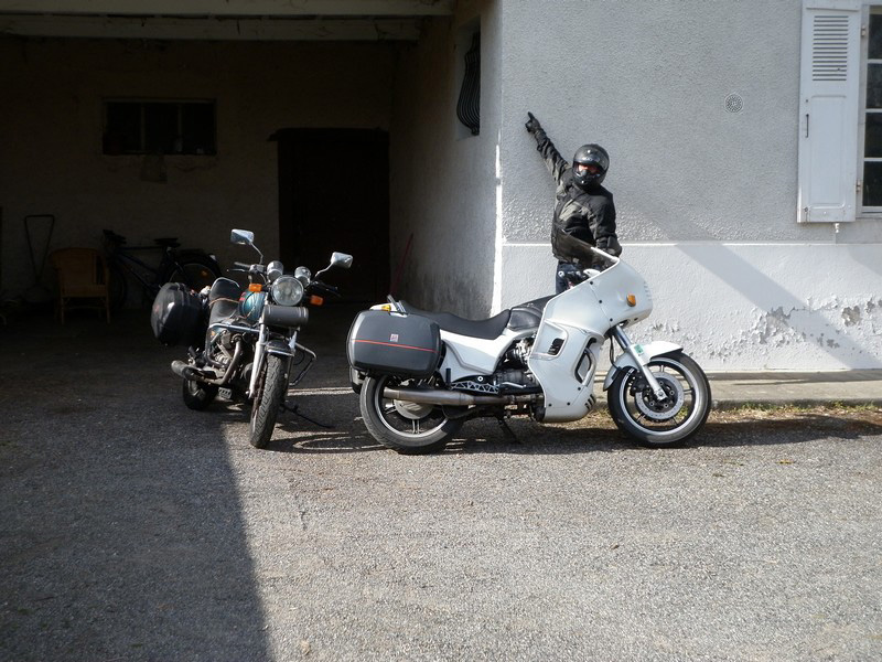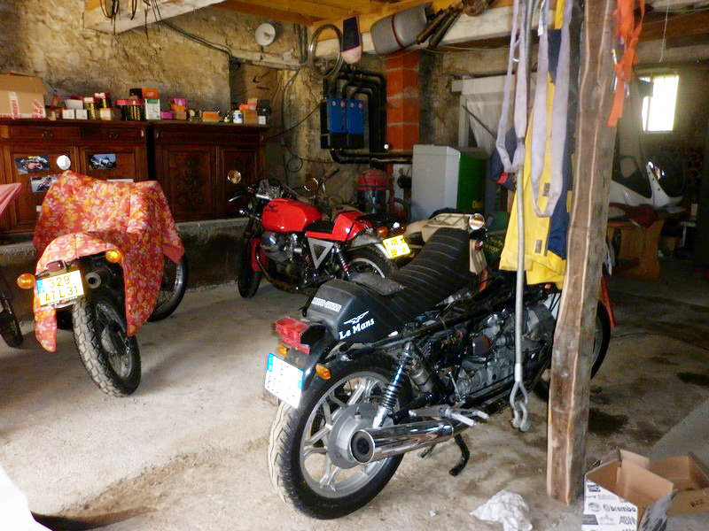 Presque par hasard, je fais la connaissance de Christian, qui habite tout près. Il me rend visite au guidon de sa 1100 Breva. C’est drôle, cette habitude qu’ont les gens du coin, de garer leur moto dans la cuisine... |