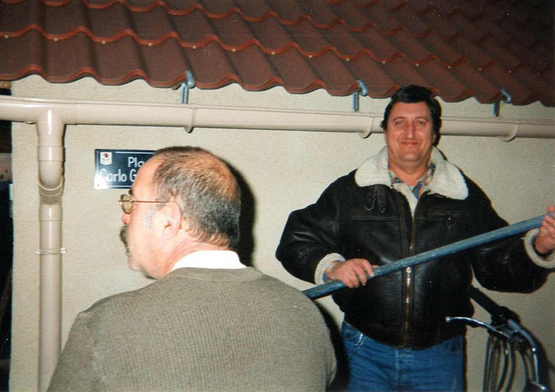 Demain, nous aurons la visite du Barde et d’Amandine. Ils seront les derniers à être photographiés avant déménagement de la place Carlo Guzzi. Le Barde a tenu parole. Vu la météo pourrie, Amandine a eu un empêchement. C’est beau, de faire 1000 bornes pour dire au revoir... Le lendemain matin, il est reparti pour Lyon. Il est vraiment bien, le Barde, il avait même amené son saucisson de Lyon pour le dîner. |