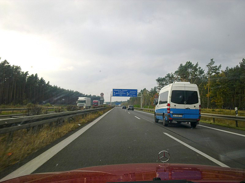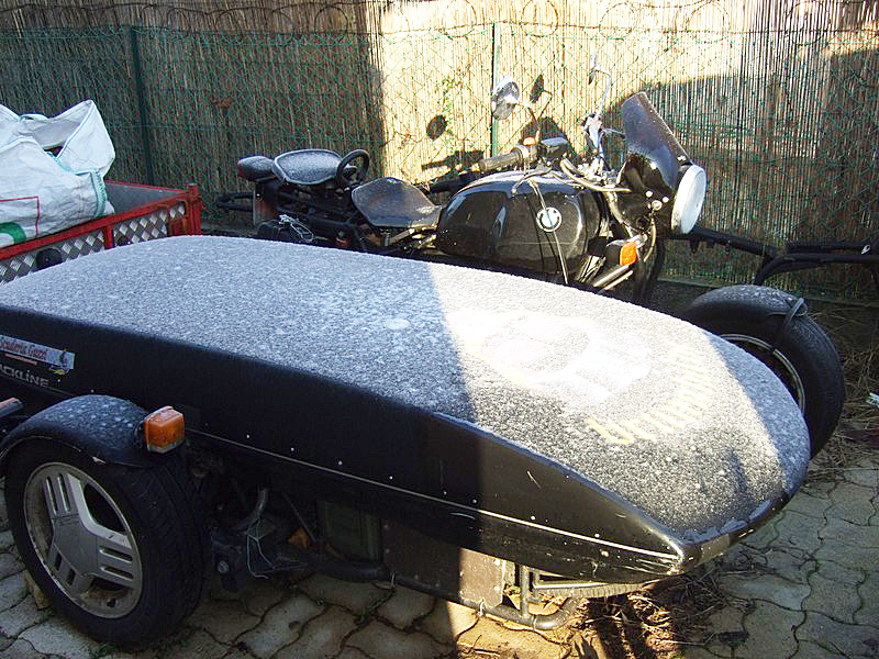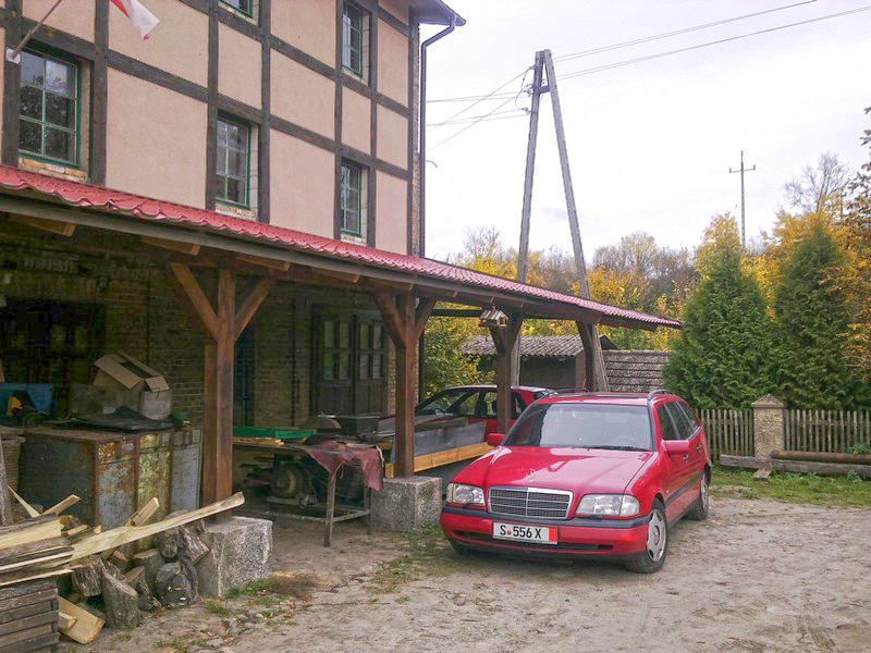Octobre 2012, je suis bien pourvu en véhicules à deux et trois roues. Il manquait bien sûr celui à quatre roues ! Je le trouve à Stuttgart, à peine rodé à 198.000 km. Exactement le modèle que je cherchais, avec boîte auto, du volume, du confort et une puissance suffisante. Avec un tel insigne en bout de capot, que pouvais-je faire d’autre que d’envahir la Pologne ? |