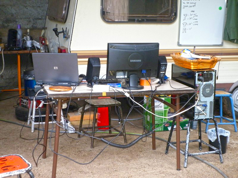 4 juin, nous passons chez le notaire et ne sommes plus SDF. Brunnhilde et la Grosse rejoignent Pointis, la caravane est calée sous le hangar. Le 5, Andréa qui cotise encore, rentre sur Cannes, elle me rejoindra fin juin. Tess parvient à établir une connexion internet dans la maison. Je lui accorde une oreille à cette occasion. |