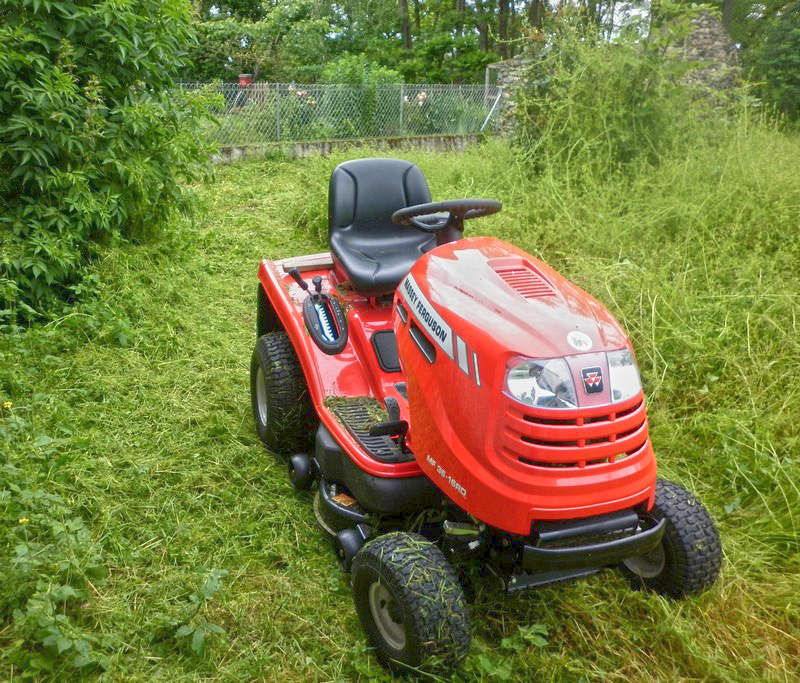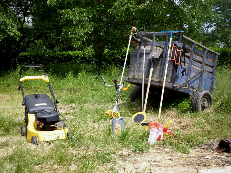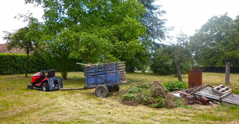 Les précédents proprios m’ont laissé une remorque-à-transporter-le-cochon. Je m’en sers pour évacuer l’herbe. Impressionnant, non ? |