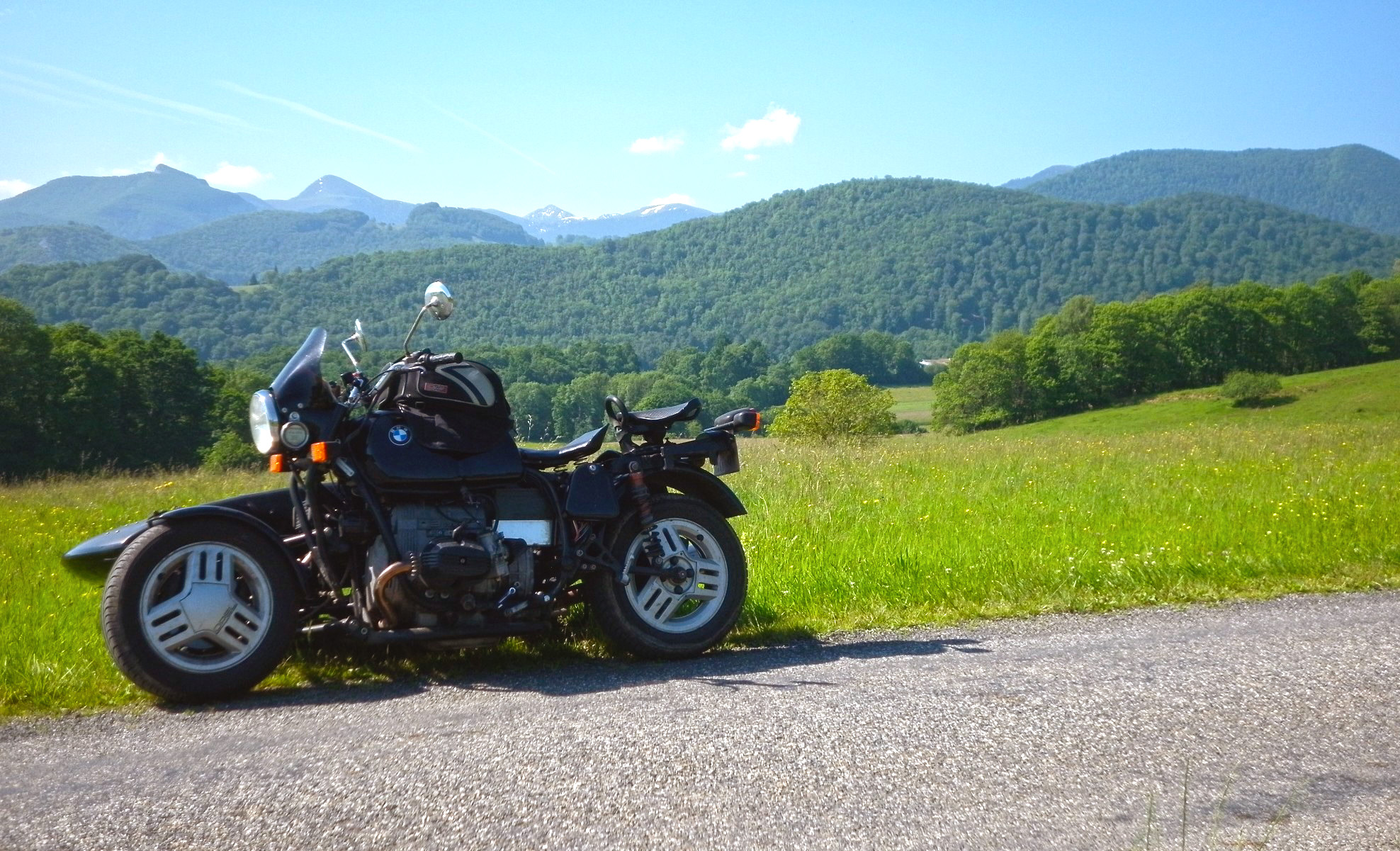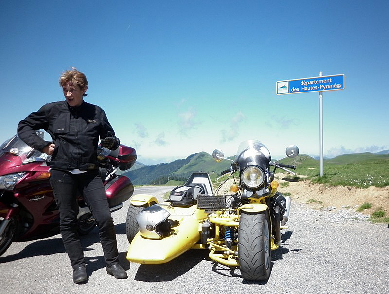 C’est dimanche, il fait beau, je dégourdis les bielles de Brunnhilde. Derrière, le pic du Midi. |