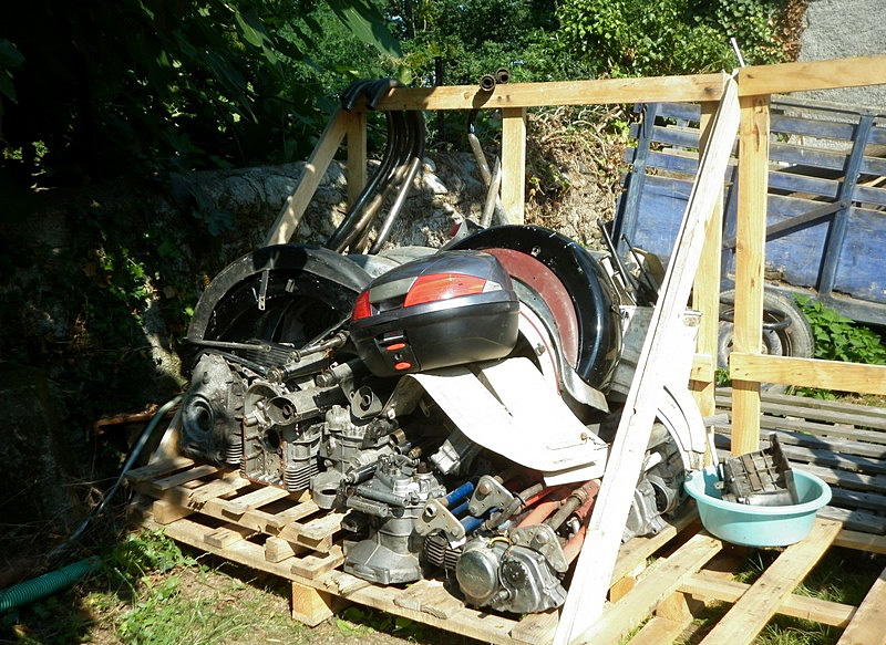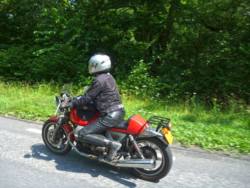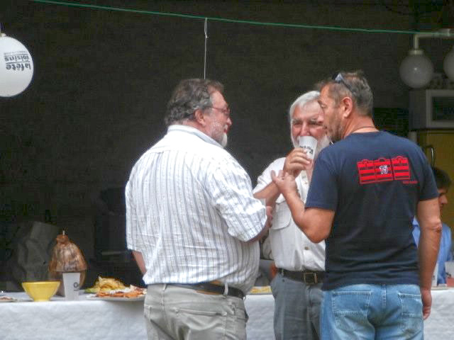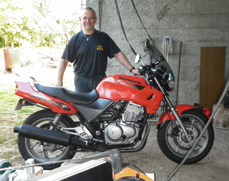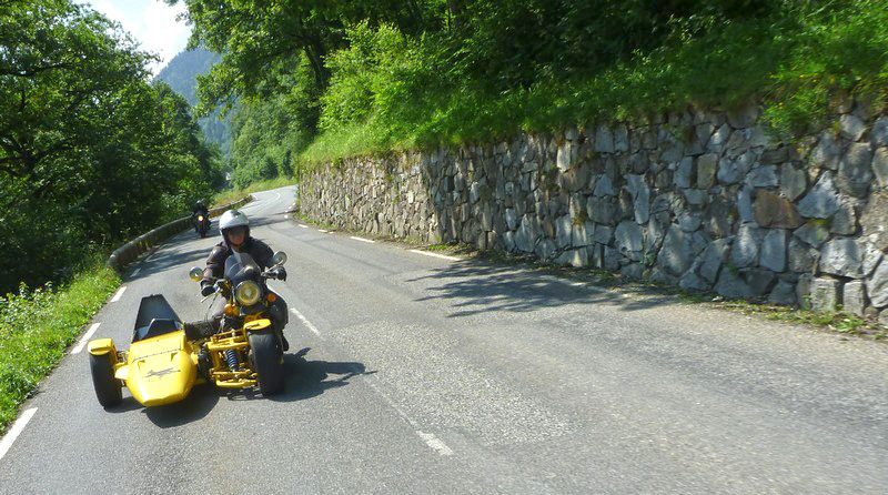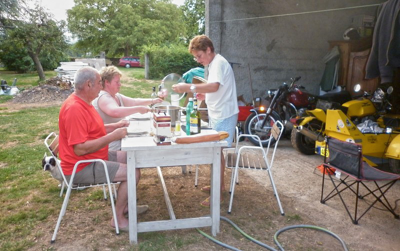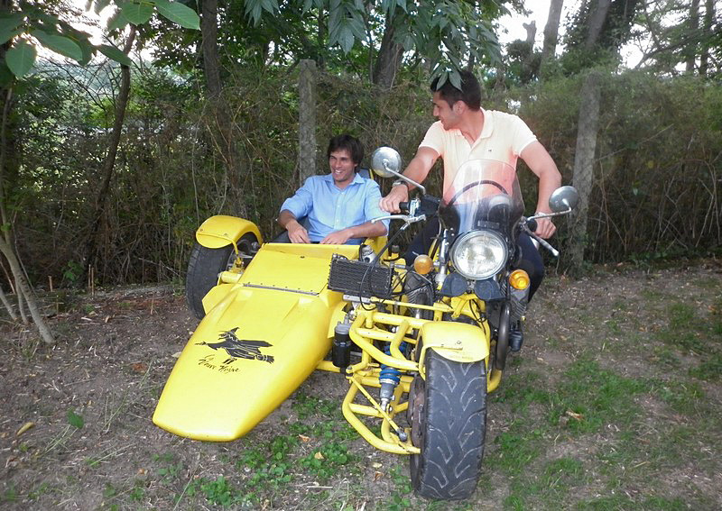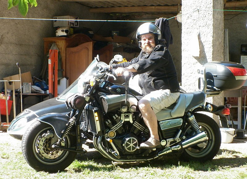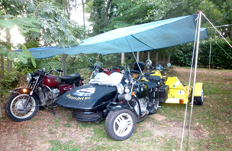 | Nous faisons la connaissance de Gerald, side-cariste de Cier-de-Rivière, à 3,7 km d’ici. Je constate avec plaisir qu’il ne s'est pas garé dans la cuisine. |