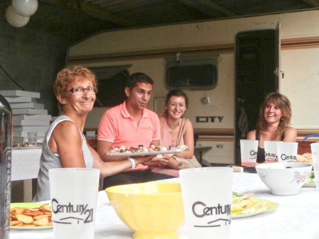 11 juillet : notre nouvelle amie Colette, qui nous a vendu la maison, organise une garden-party en invitant nos nouveaux voisins. L’agence Century 21 fait bien les choses, le buffet est sublime (pardon Alain, je n’ai même pas fait de tof de tes superbes plateaux) |