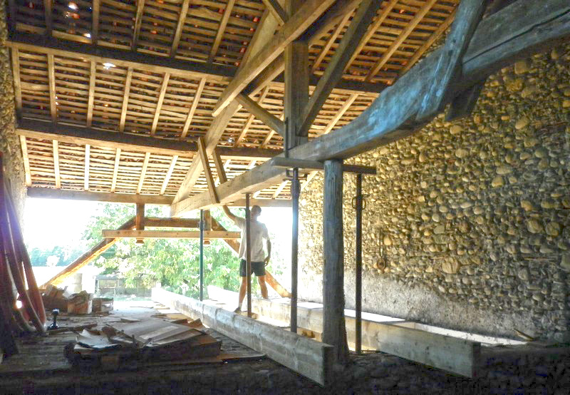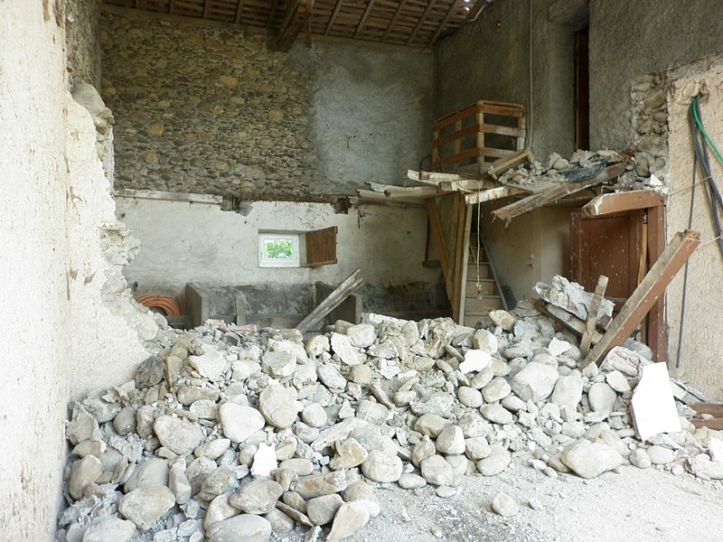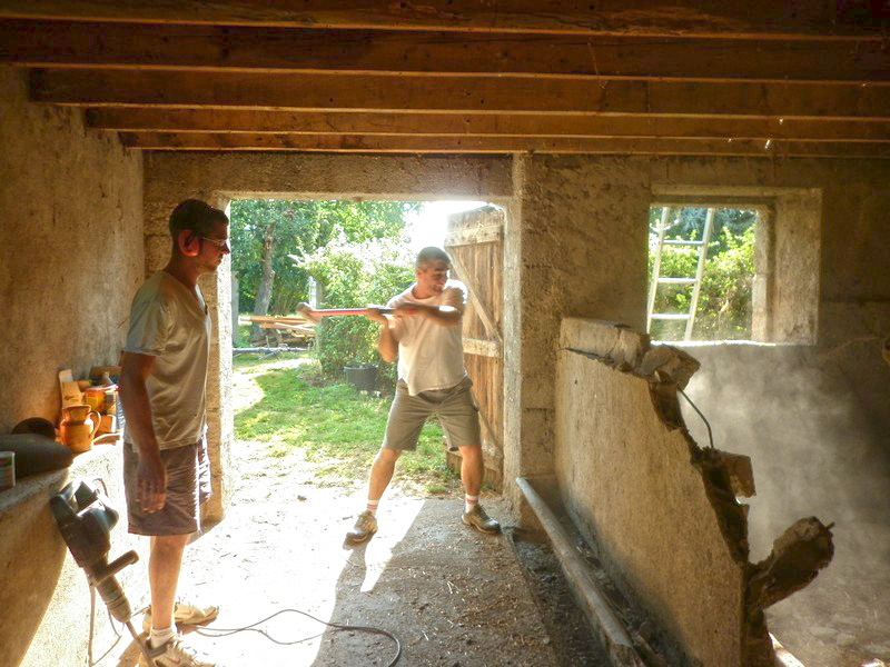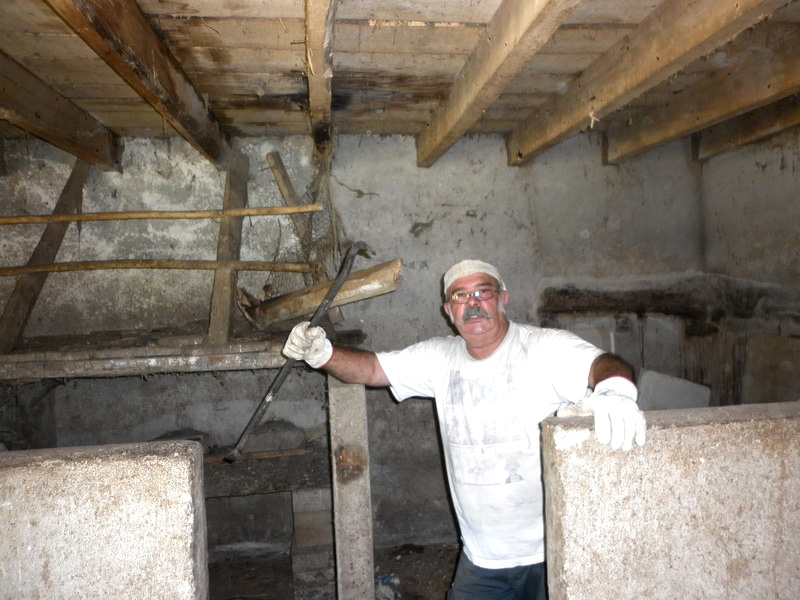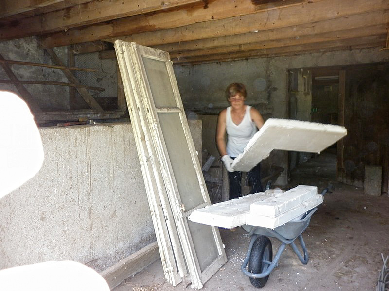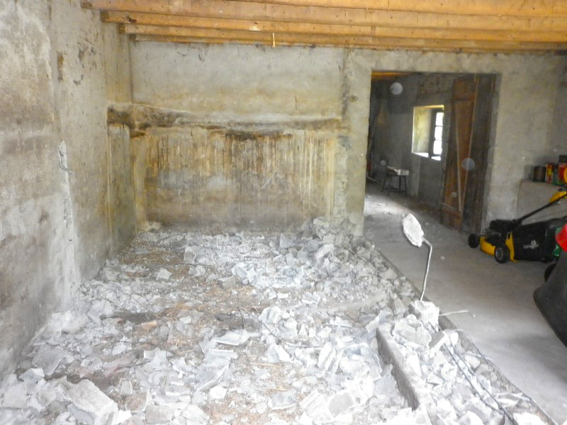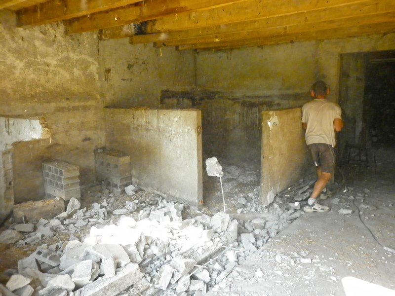 | Le plancher de l’ex-porcherie est déposé. | ![]() |