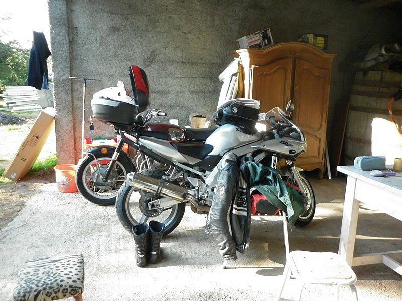 | Et nous avons la visite de Julien et Sylvia, en 1000SV, et qui vient de passer les 100.000 km (la moto,