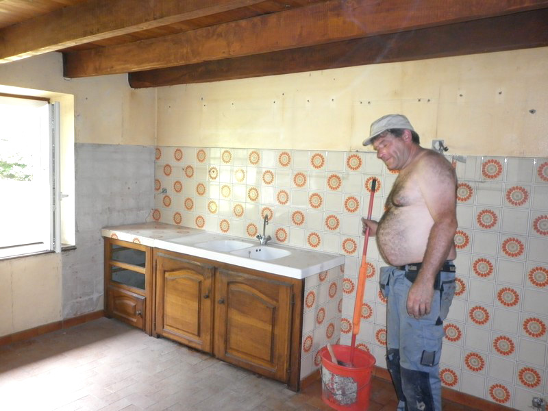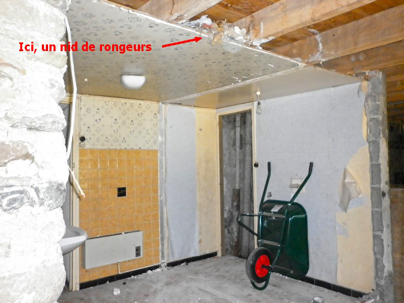 | Les travaux se poursuivent. Ici l’ancienne salle de bains, appelée à devenir la nouvelle salle de bains. | |