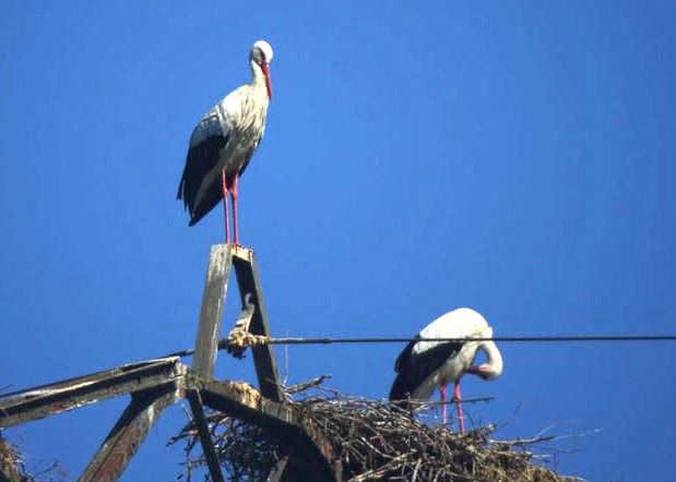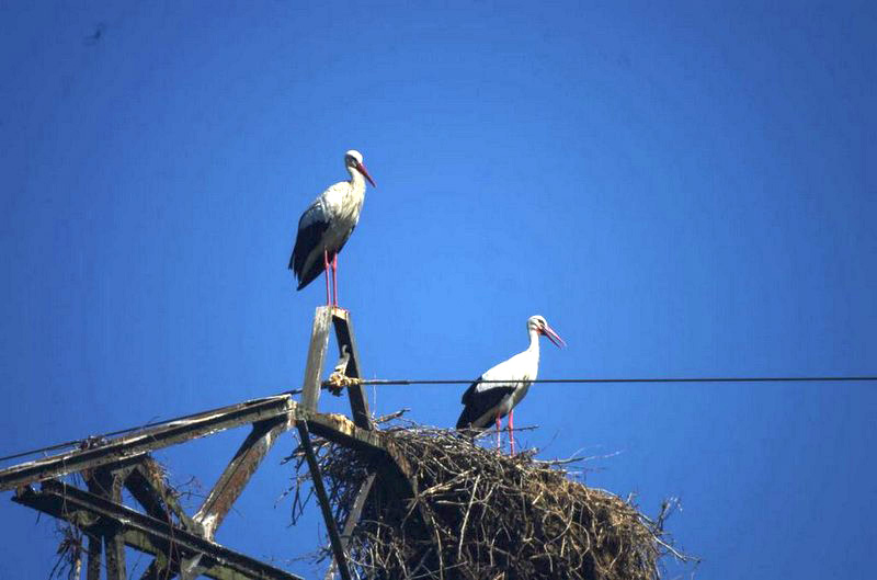 | Merci Caro pour les photos de cigognes. Il manque le cigogneau, qui était sorti avec ses potes ce soir-là. |