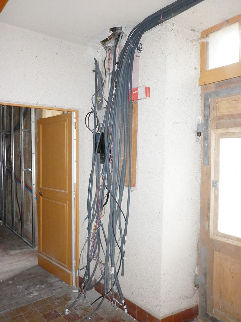 | Avant la mise en place des plaques d’isolant, les électriciens ont tiré leurs câbles... | ![]() |
