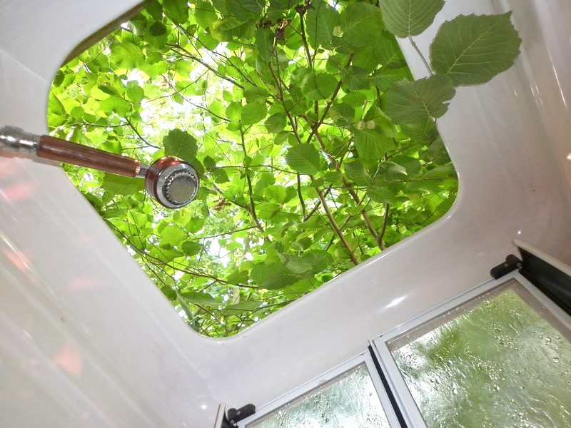 | Une vraie douche a été mise en service avec succès, installation faite en cadre naturel. La direction prie les visiteurs des premiers jours de bien vouloir lui pardonner les rigueurs de leur installation. |