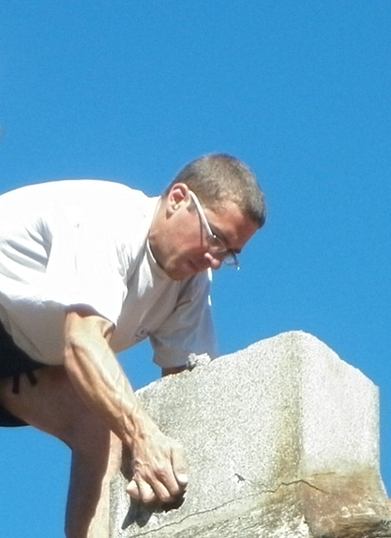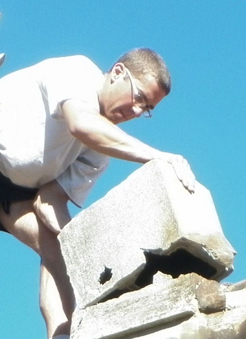 Patrice et Benjamin. Ici, Patrice en train d’interpréter une sonate pour Masse et Mur ferraillé à l’ancienne. |