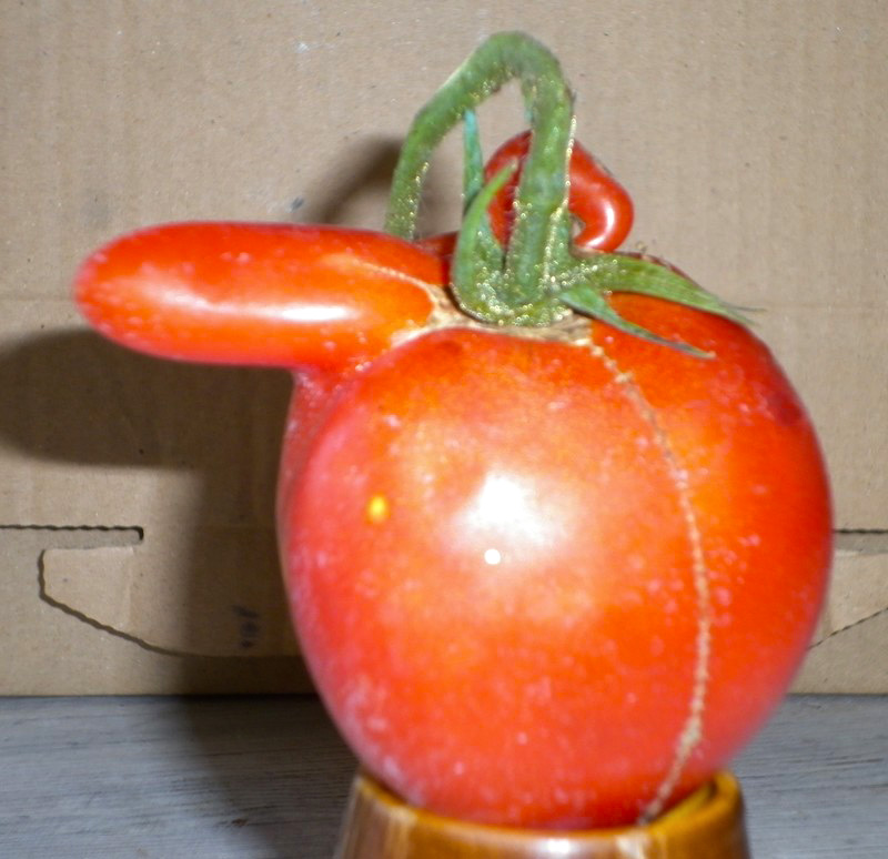 | Et une tomate pointine. Les experts sont partagés entre hypertrophie testiculaire ou variété minibitale ? |