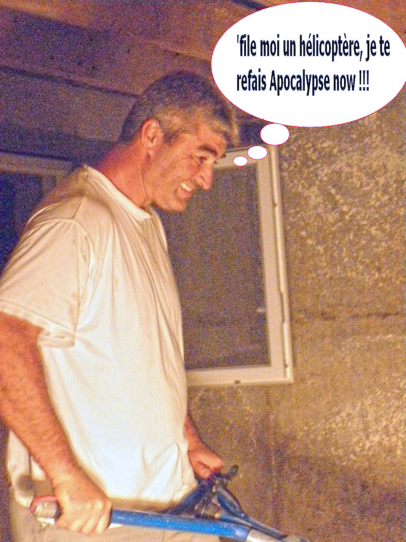 | Et finition à l’hélicoptère, opération particulièrement longue : Patrice finit à la nuit tombée. | ![]() |