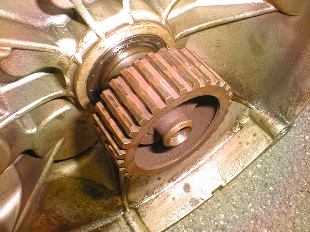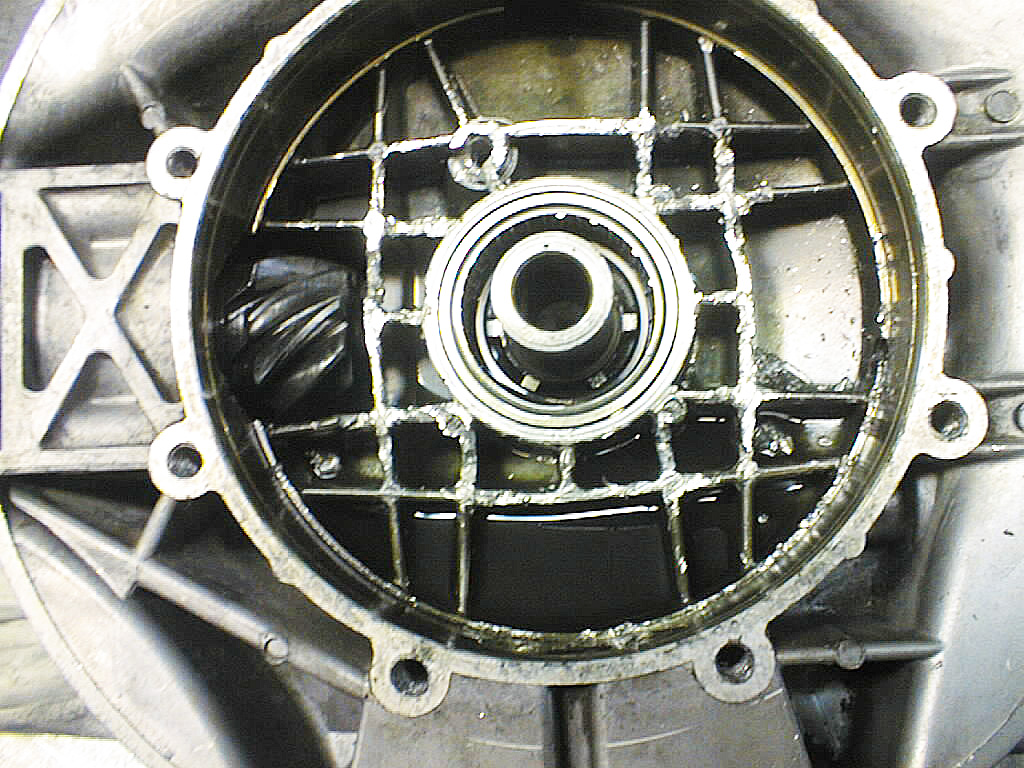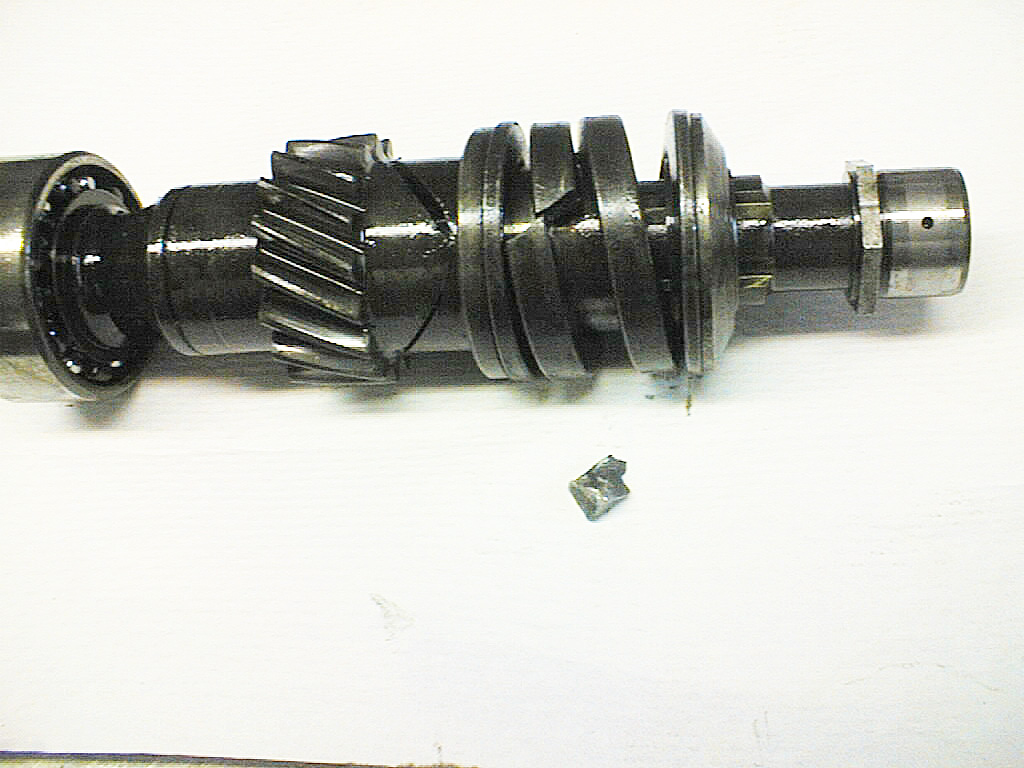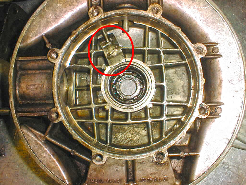 | Il manque la vis M8 et la languette qui retiennent le roulement. Ici photographiées sur un autre pont de V7. |