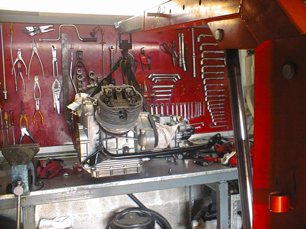 | Les culasses avec les nouveaux sièges et guides ne sont pas terminées, j’ai posé provisoirement 2 culasses pour boucher les trous. | ![]() |