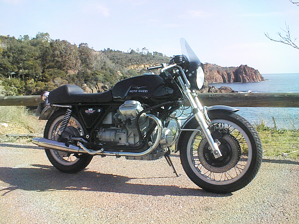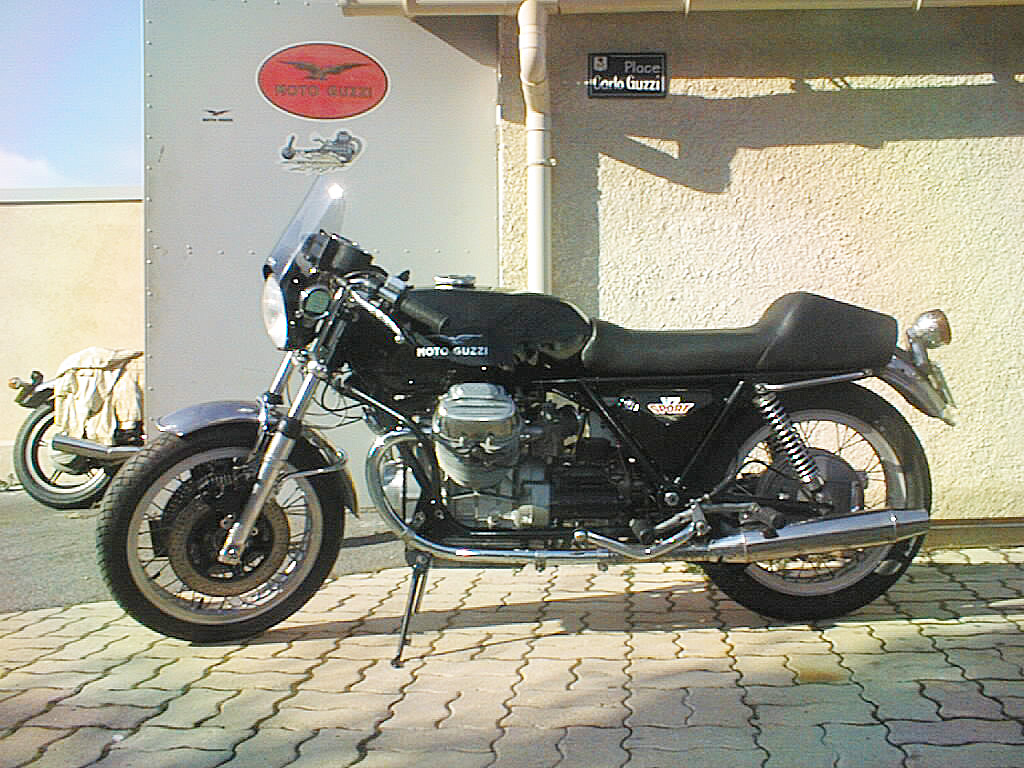 Les jours ont passé, Catherine s’est décidée à vendre sa V7 : cette moto est devenue trop lourde à piloter pour elle. C’est aussi une moto difficile, vitesses à droite, première en haut, de quoi déconcerter le blaireau de base. Tout est neuf dedans, les factures sont là. Depuis la restauration, cette moto n’a pas fait 10.000 km. Je le sais, Catherine roule avec nous. Elle est en vente chez Legend Motor Sport, à Mouans Sartoux. |