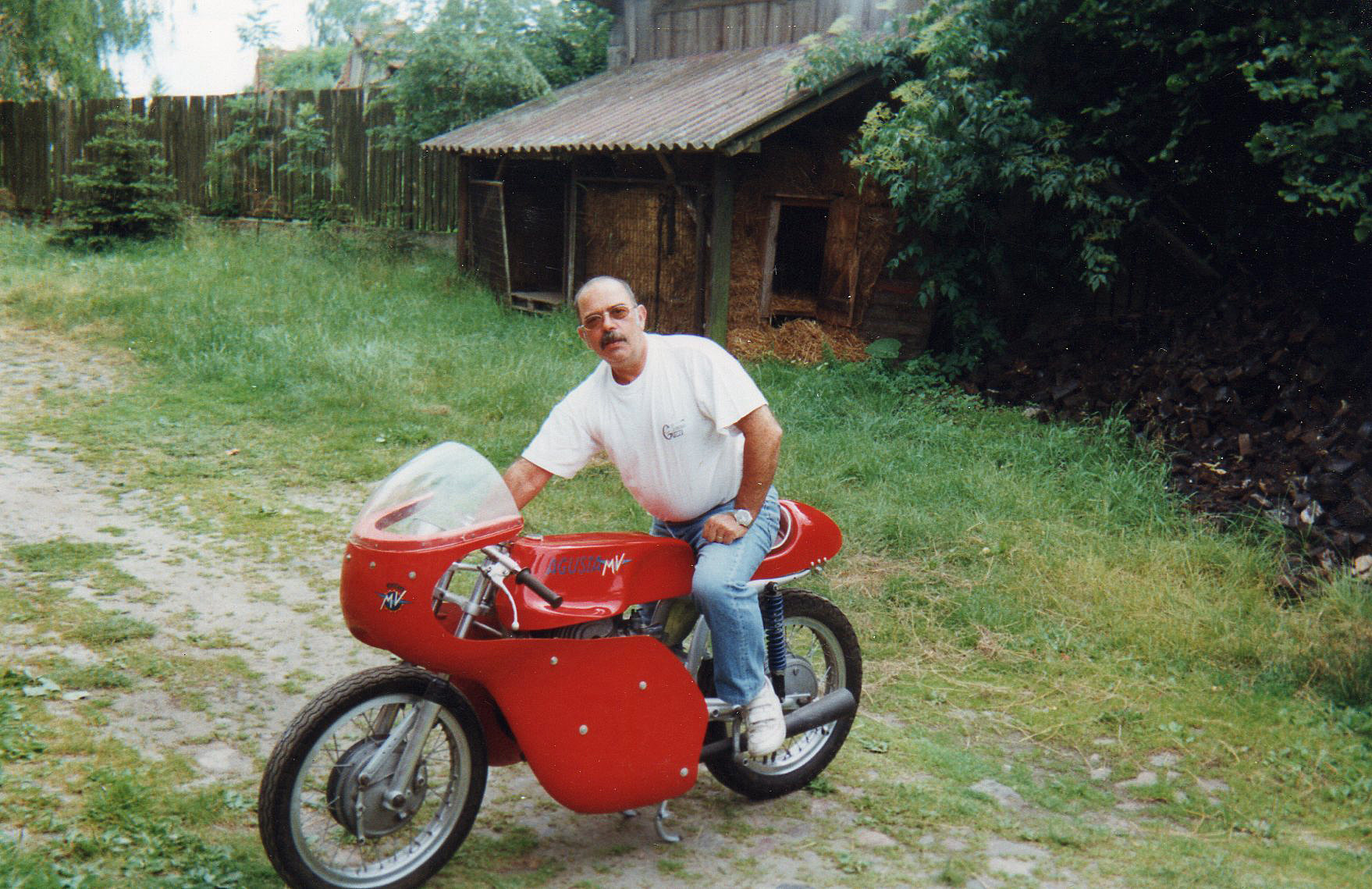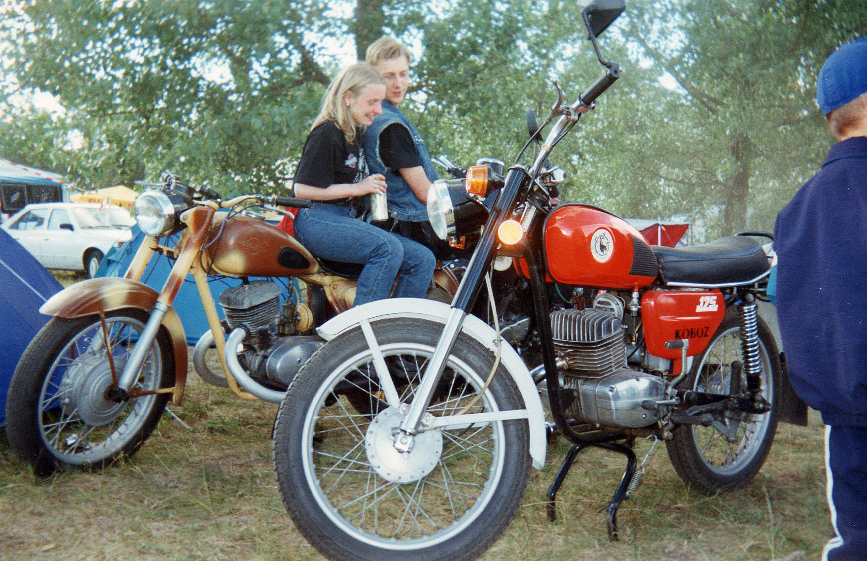 oignons, cébètes, concombres et poivrons et nous pouvons sans transition attaquer la première Piwo du jour, suivie par bien d’autres bien tièdes. Mon pote Jurek est le pape de la BMW R75 et Zündapp KS750. Il vend actuellement aussi une MV350 bicylindre. |