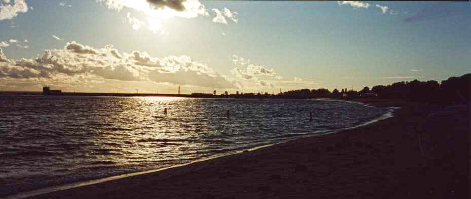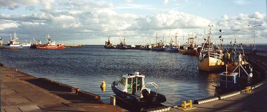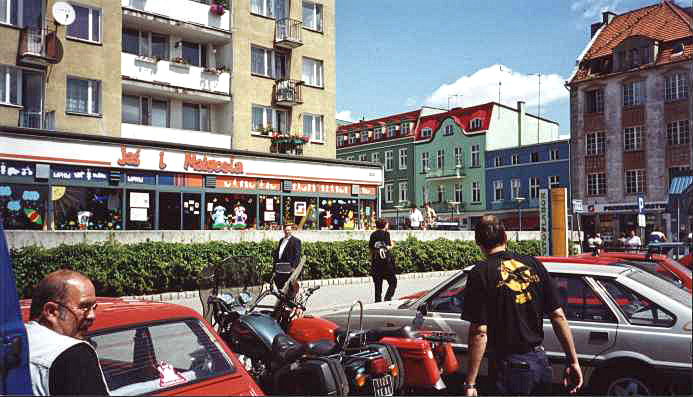 | Arrivée vers 20h. Hôtel, on part vite bouffer car la plupart des restaus sont déjà fermés : c’est pas Juan les pins. On trouve un truc super, rempli de pièces de bateau cuivre/acajou. Piwos, repas complet et abondant poisson, morue fraîche, blanc de Bordeaux, desserts et vodkas Zubrowka pour environ 80 FF par personne. L’hôtel donne sur le port et la Baltique, ça doit être pour ça qu’il en coûte aussi près de 100 FF par personne. |