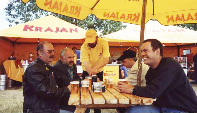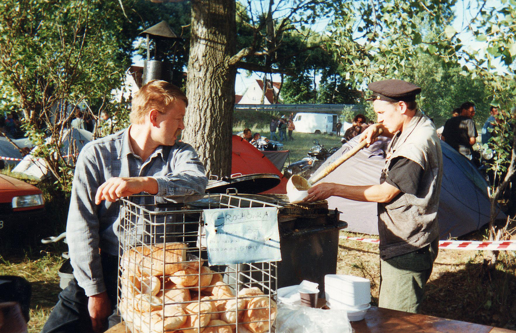 | Finalement, c’est triste d’être polonais : la plupart ne connaissent pas les Guzzi. Jurek nous rejoint, on se tape une ’tite chope et faisons éponger ça par une soupe aux haricots servie d’une roulante militaire et aussi épaisse que l’intellect d’un commissaire politique. |