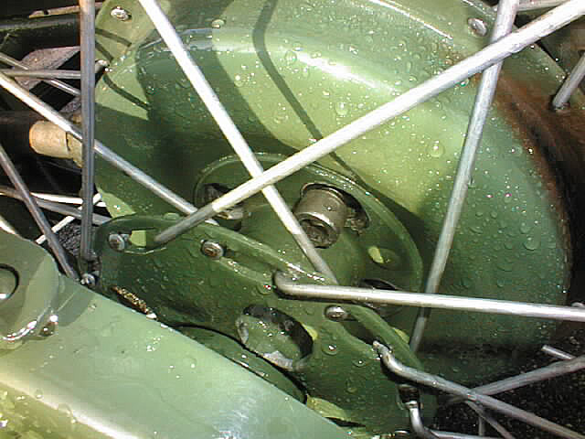 Parti et m’autorise des glissades sublimes dans les gauches. Les “modernes” sont parties devant, notre groupe se réduisant à MCT et au Pââât. La séance de réparations suivante de déroule à une soixantaine de km d’Issarlès, les copains qui suivaient ayant remarqué que je perdais des boulons. En réalité, ce ne sont que des vis et celles qui maintiennent la roue AR contre le pont. Séance technique : contrairement aux Guzzi dont la roue AR est entraînée par cannelures, la roue Zündapp est maintenue par un axe assurant seulement le maintien, l’entraînement se faisant par 4 vis M12 plaquant le flasque de roue contre le pont dont la “couronne” à 4 filetages intérieurs. Il restait 1 vis sur 4.... |