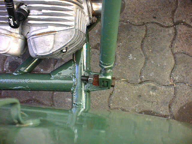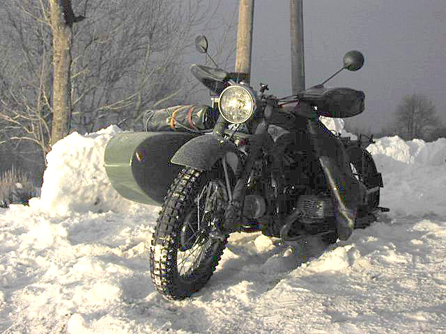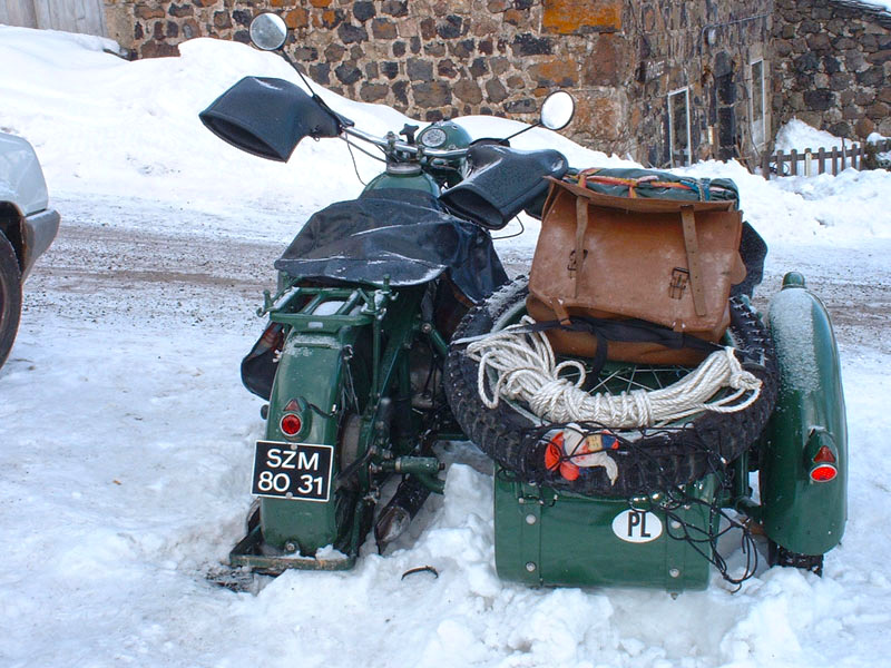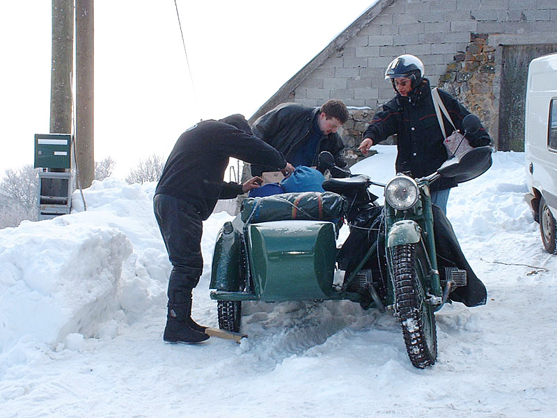 et les trous sont maintenant oblongs. Rien ne pourra tenir. Dommage car il y a tout ce qu’il faut ici pour réparer. Je ne résiste pas au plaisir, un coup de Start-Pilote, 4 coups de kick et elle démarre, encore blanche de givre. |
