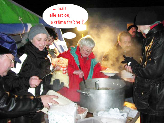 rentrée toute seule chez elle. On retrouve les potes, on boit un autre vin chaud, Marie Lonza nous a mijoté une soupe au Pistou ardéchoise avec lardons et saucisses. |