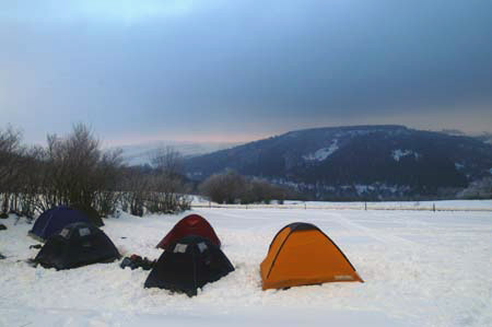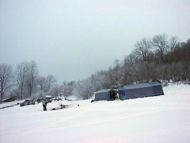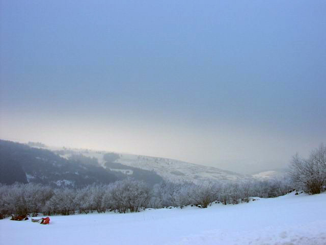 | Dimanche matin. Ça va mieux. Dormi comme un vieux bébé fatigué. Petit déj’ à la ferme ; je retourne voir ma Belle qui a dormi bien au chaud dans un tas de neige. |