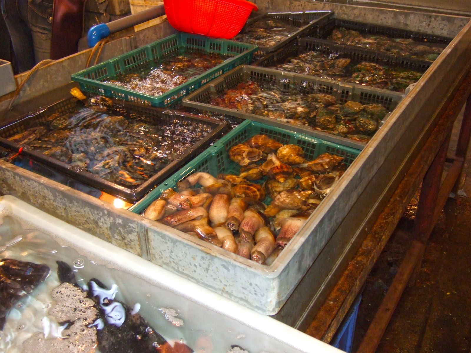 | Par contre, ce que j’ai vu sur un petit marché ne manque pas d’intérêt. Pas de frigos, tout ce qui est présenté sur l’étalage est frais ! |