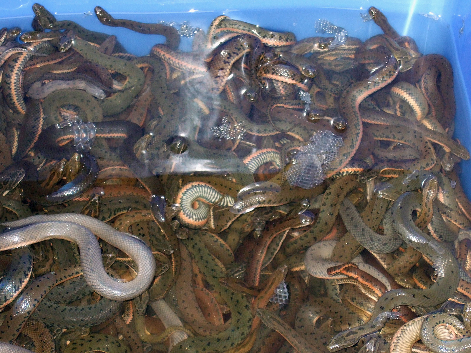 | Il y en a pour tous les goûts, serpents d’eau ou terrestres. | ![]() ![]() |