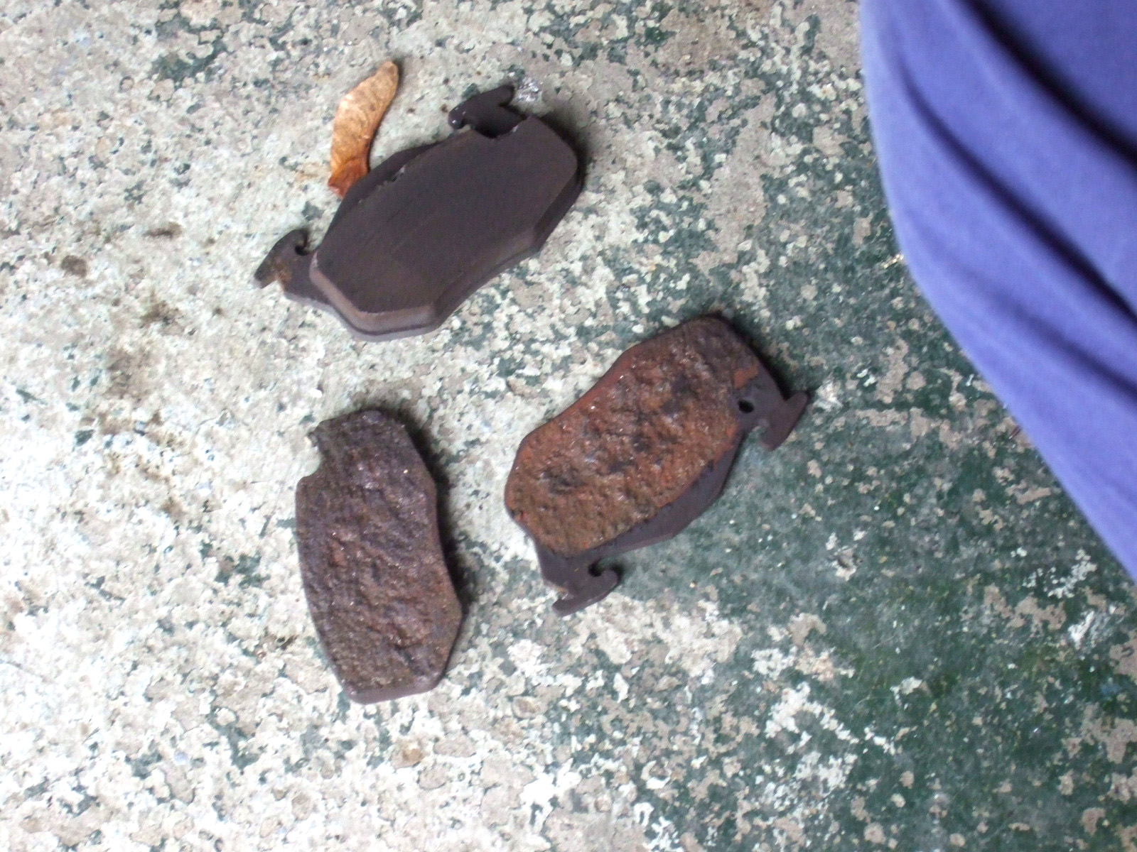 tout noir, et me demande : « C’est à toi, ça ? » Mon oeil exercé reconnait aussitôt un morceau de plaquette de frein. Normalement, mes plaquettes se trouvent sur les étriers, et non au sol. Eh ben non, c’est bien à moi que cette demi-plaquette appartient : la partie “frein” s’est séparée du support acier. Pas très, très grave car c’est l’étrier qui est commandé à la poignée : je peux encore freiner au pied sur les étriers AV, AR et panier. Je décolle vendredi matin, retrouve rapidement la pluie, un petit 10°C dans le Jura. La pluie s’arrête peu après Mulhouse, je trouve un jeu de plaquettes à Colmar et constate que j’ai perdu le cligno AR-D de la moto. Pas grave, il était pas branché et ne devait pas être fixé sérieusement ! |