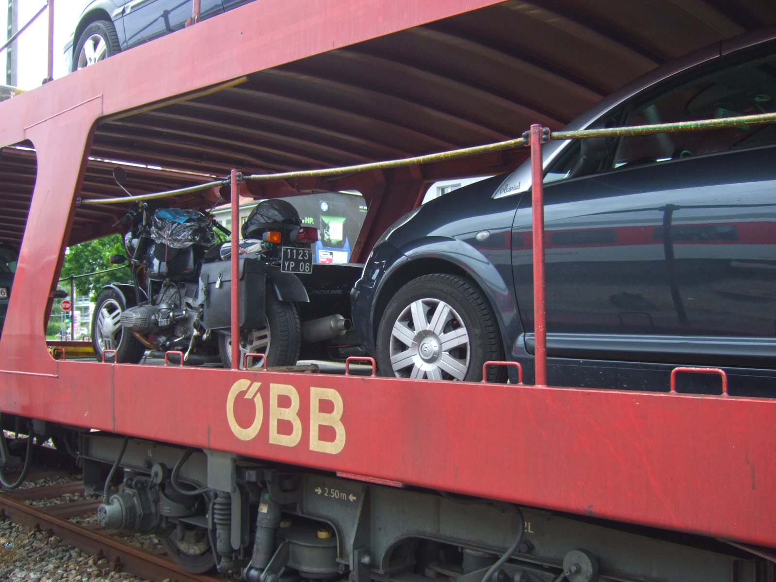 | Brunnhilde est chargée sur le wagon : elle n’est pas tranquille, mais je lui explique qu’elle va se reposer les bielles durant le trajet jusqu’à Hambourg. | |