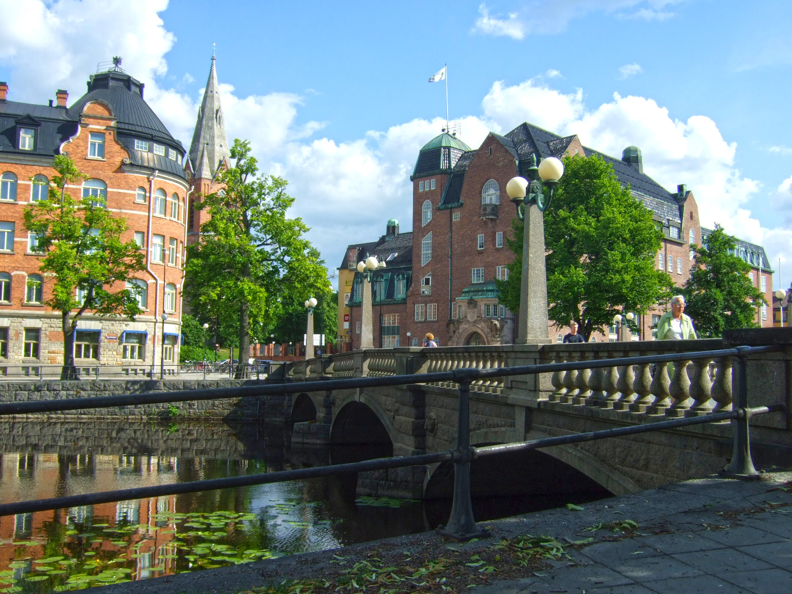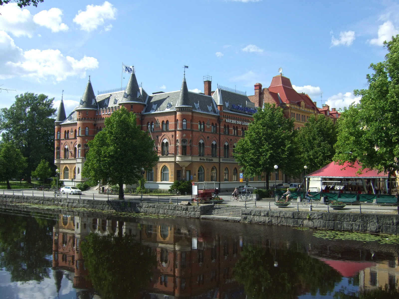 ville, qui est tout de même la 6e de Suède en terme de population (133.000 habitants) pour ceux qui ont eu la flemme de chercher sur le Net. Le château, photographié depuis ma fenêtre d’hôtel, style Renaissance, semble être la grande attraction du coin. |