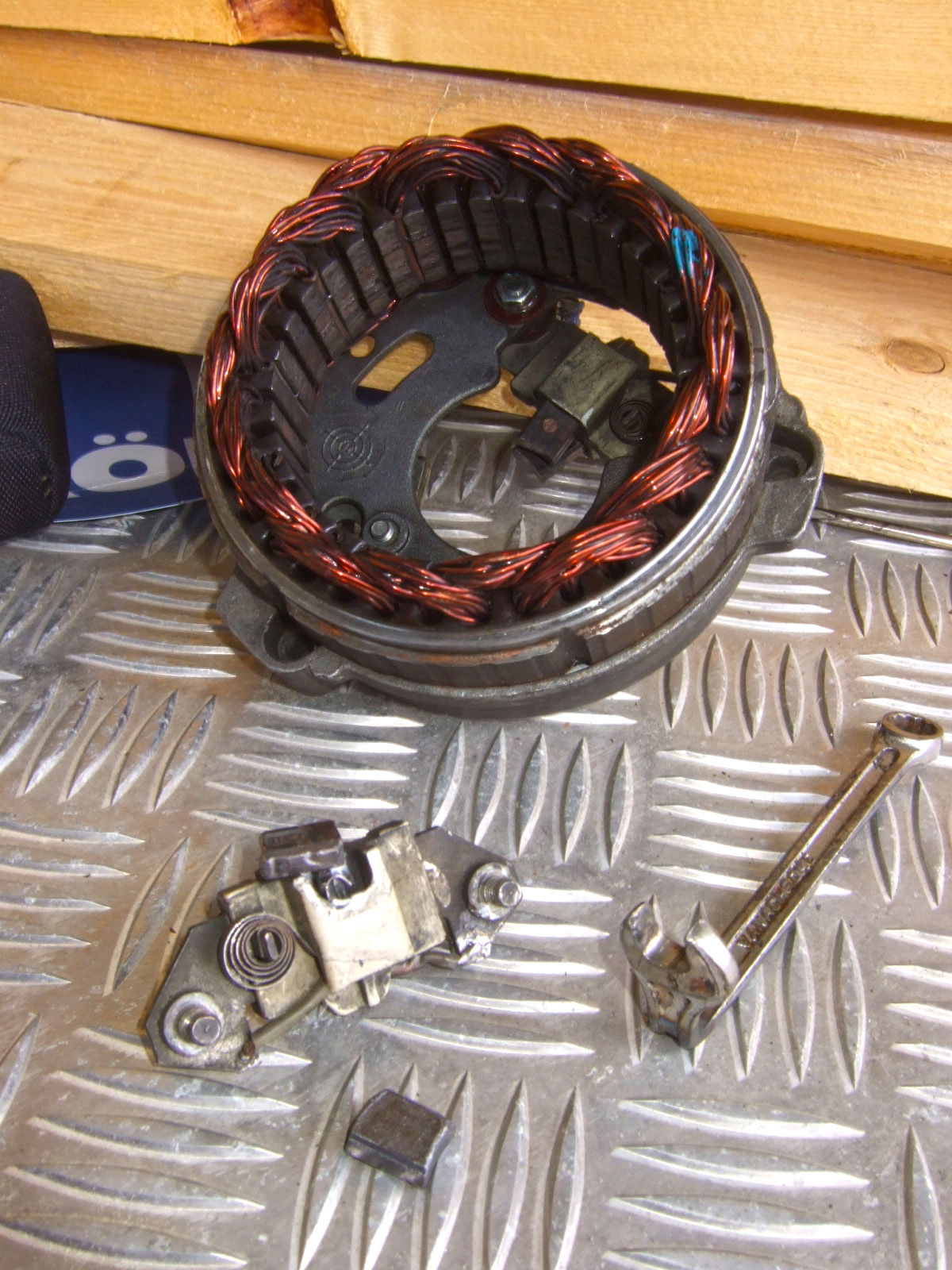 | Le rotor changé, je constate que le porte-balais du stator s’est brisé pendant le