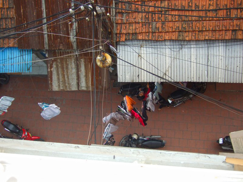 | La vue depuis le balcon, mais vers le bas. | ![]() |