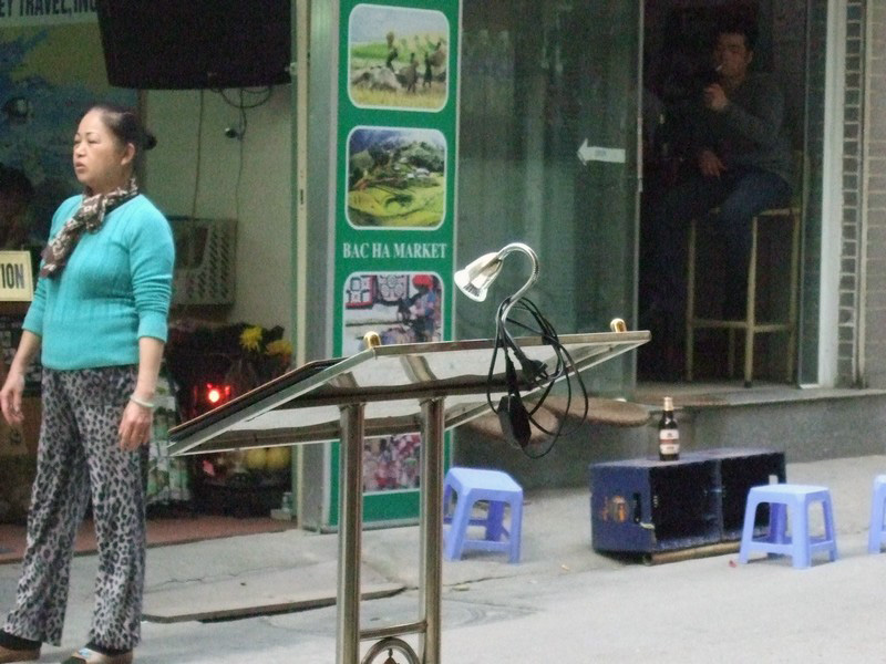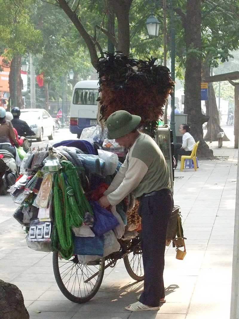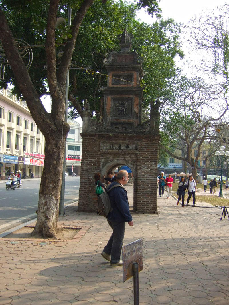 Nous déambulons donc à la recherche d’une banque quand je suis accosté par un jeune garçon souriant qui me fait remarquer que ma semelle se décolle. C’est là qu’arrive un deuxième cordonnier itinérant, dont l’œil exercé a vite répéré la semelle de ma deuxième chaussure ! Trois minutes plus tard, les deux chaussures sont réparées alors que l’on me présente une facture verbale de 40 USD! Se multicourbettant de remerciements, celui-ci décampe, laissant là son collègue. Bien sûr, il n’était pas content. Je me suis fait avoir comme un bleu, comme un touriste ! 20 €, c’est presque 1/2 mois de salaire ici ! Entre deux semelles, Andrea s’est aussi faite accoster par des marchands de cartes, de bouquins, de chaispasquoi, par une madame et son balancier de plomb, 5 dollars pour photo ! Nous réussissons à nous en extirper, une banque est juste à côté. Je change des dongs. Excellent repas au “Mediterraneo”, restaurant... italien en compagnie de Jacques. Demain, pour effacer la fatigue du voyage, promenades tranquillou dans Hanoï et rencontre de Nam, notre chauffeur-guide. |