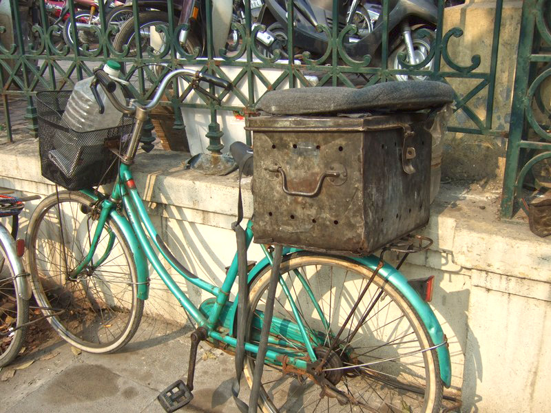| Pour faire son marché, on n’est pas obligé de descendre de cyclo. On s’y faufile, les piétons n’ont qu’à se garer ! | ![]() ![]() ![]() ![]() |