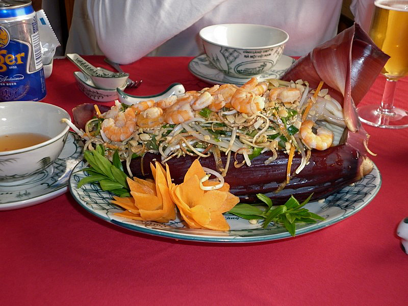 | Déjeuner dans un chouette restaurant du bord du lac. C’est de la fleur de bananier. |
