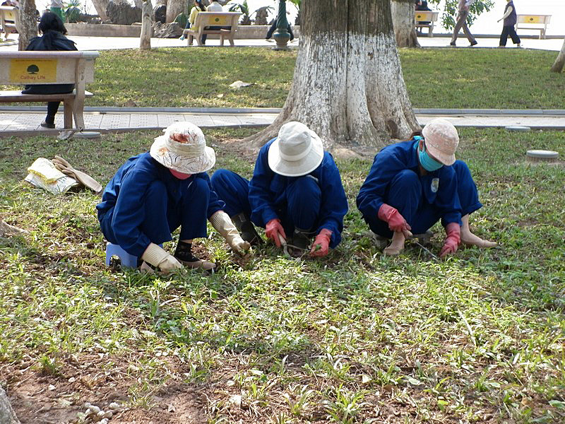 | C’est marrant, quand on voit quelqu’un qui bosse, c’est une femme ! Beaucoup portent un masque. Au début, je croyais que c’étaient les moches, mais c’est inexact. |