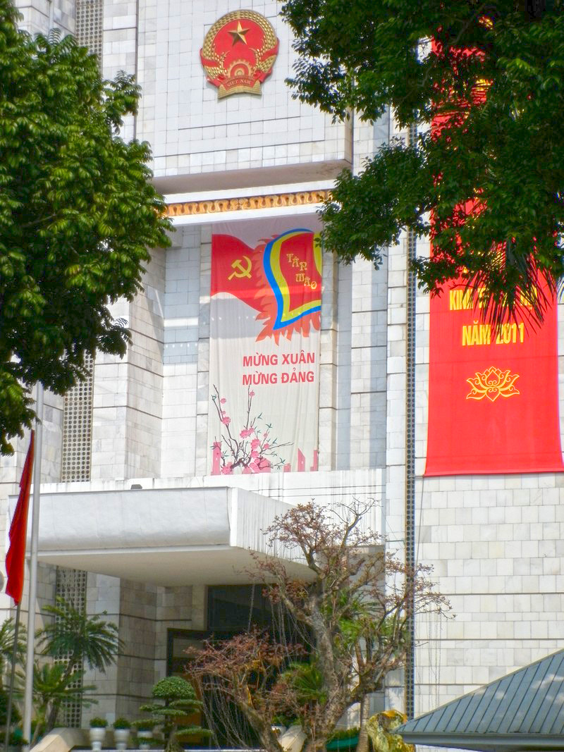 Mercredi 30 mars, réveil à 5h30. Catherine nous dépose à Nice. Vol sans histoire jusqu’à Paris CDG. Ayant une petite faim, prenons un café- sandwich chez Paul. Embarquement 13h25 sur Vietnam Airlines. Va y en avoir pour 11h30 jusqu’à Saigon (pardon, Ho-Chi-Minh City). À peine après le décollage, la ronde infernale des hôtesses en Ao-Daï commence : repas du soir ! Et puis, les écoutilles sont fermées, va falloir dormir ??? À part dormir, que faire d’autre ? Réveil vers 5h, c’est le petit déjeuner : L’avion soubresaute, les ceintures doivent être bouclées et le commandant Lind-Berg, notre pilote, nous communique qu’en raison des conditions de vol, il n’y aura pas de café ! Atterrissage à Saigon vers 6h. Je glisse sur la durée des formalités de visa vu qu’il n’y avait qu’un seul policier pour tout l’avion ! On finit par récupérer nos passeports : le visa d’arrivée se payant en USD, le policier local fait une brillante conversion style 1 € = 1 USD. Cet aéroport est d’une propreté chirurgicale. Sur le trottoir, une équipe de 5 personnes dépoussièrent la partie SUPÉRIEURE des panneaux indicateurs ! 2 heures et quelques clopes plus tard, avons enregisté pour Hanoï et embarqué après un contrôle des plus aléatoires. Les soubresauts en vol font que nous n’aurons pas de café mais un snack (le pain, ce doit être Paul le pâtissier fin qui l’approvisionne) et un espèce de pudding bizzarre que nous n’avons pas osé manger. Vers 10h, sommes enfin à Hanoï. un brave petit Vietnamien avec un panneau “Jean Noël” nous attend. C’est bien le chauffeur de l’hôtel. Nous embarquons et suivons un genre d’autoroute. Est-ce un jeune conducteur inexpérimenté ? Il ne dépasse pas 80 km/h mais klaxonne comme il respire. D’ailleurs, tout ce qui circule répond en klaxonnant ! Un ralentissement : notre chauffeur se jette sur la voie de détresse (en klaxonnant dûment), dépasse à droite le camion qui nous précédait, les nombreux 2 roues qui partent en tous sens et, tiens ! nous sommes devant, entourés de véhicules de tous calibres. Apercevons les premières rizières, des buffles, des maisons très étroites, des bambous... Andrea a fermé les yeux plusieurs fois pour ne plus voir la circulation et enfin, c’est l’hôtel ! |