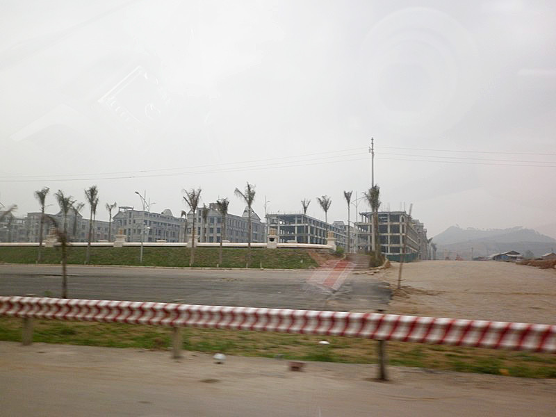 | Ce qui m’a également frappé, c’est que de très nombreuses maisons sont en construction, ainsi que nous l’avons vu tout au long de notre voyage, mais qu’elles sont toutes au même niveau de construction, c’est à dire fin du gros œuvre, sans aucun début d’aménagement intérieur et sans portes ni fenêtres. | ![]() |