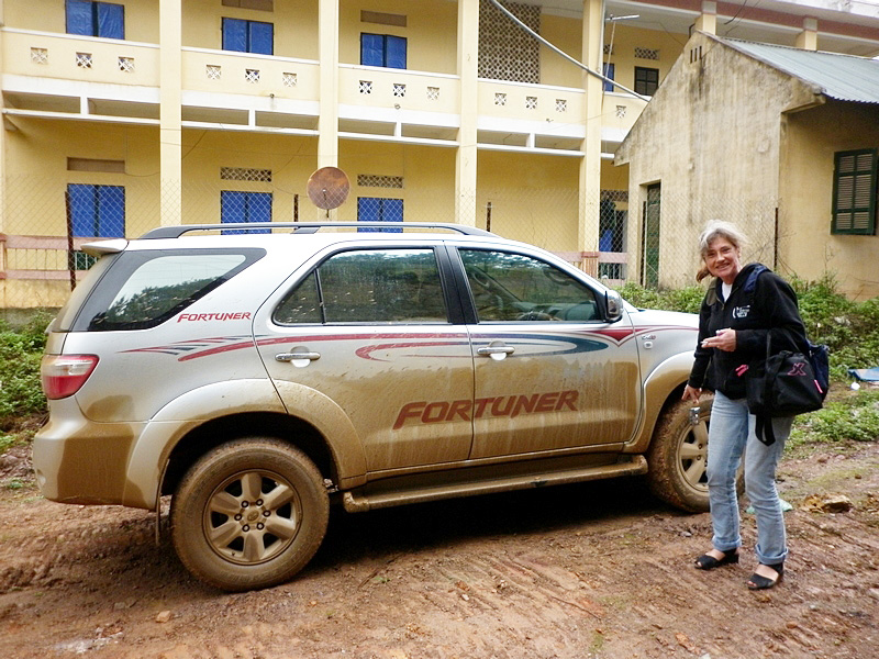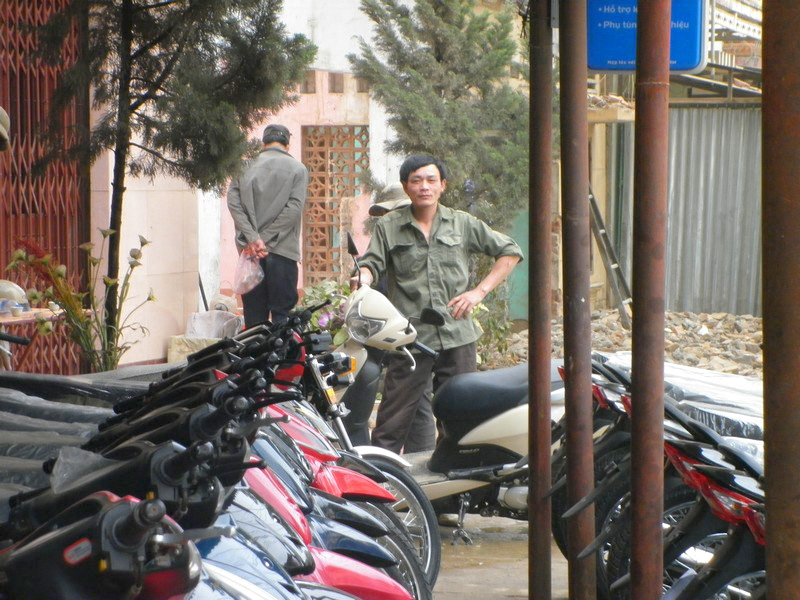 | Arrivés à Ban Gioc, Nam va acheter les autorisations de visite. Tous les soirs, à l’arrivée à l’étape, il lave sa voiture. Sa voiture est propre chaque nuit. |