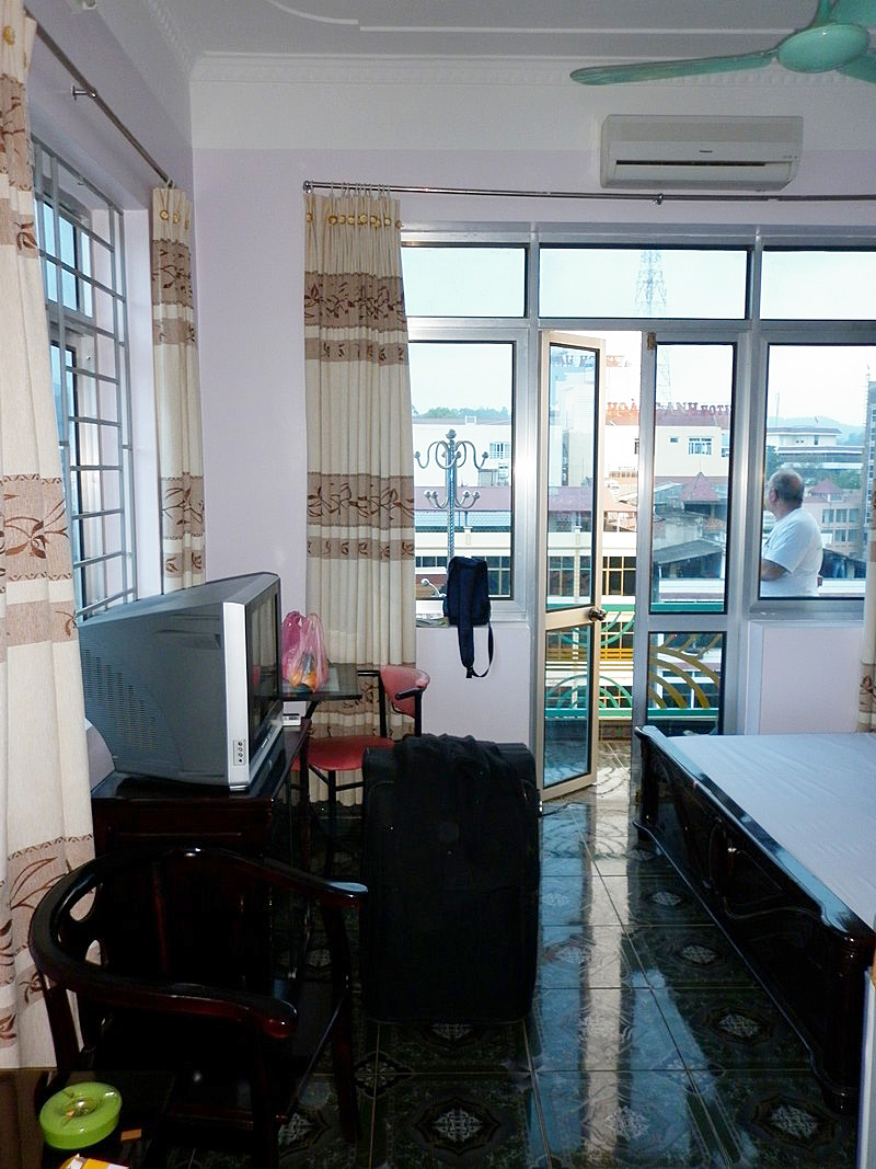 | Et c’est l’arrivée à Cao Bang. www.net4war.com/e-revue/dossiers/indochine/RC4/rc4-01.htm Note du Ouebemasteur : le lien ci-dessus étant brisé, celui-ci pourrait le remplacer, sans garantie d’impartialité. Le Wiki peut aussi être une source d’informations. L’hôtel est au bord du fleuve, la rambarde du balcon m’arrive sous la ceinture... Patronne pas très sympa, un peu genre animatrice à la Loubianka. Mais il se fait tard et cassons la croûte au restau de l’hôtel. |