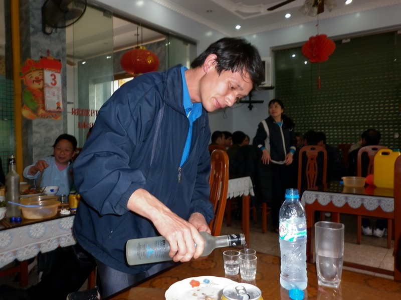 | Les Vietnamiens aiment pavoiser et c’était pourtant pas un jour de fête ! Ce soir, repas léger : soupe avec rouleau de riz vapeur. |