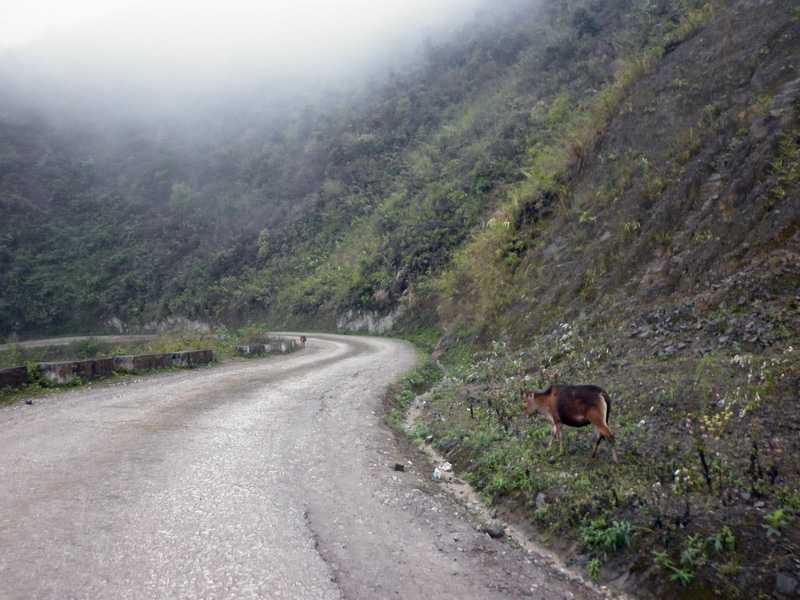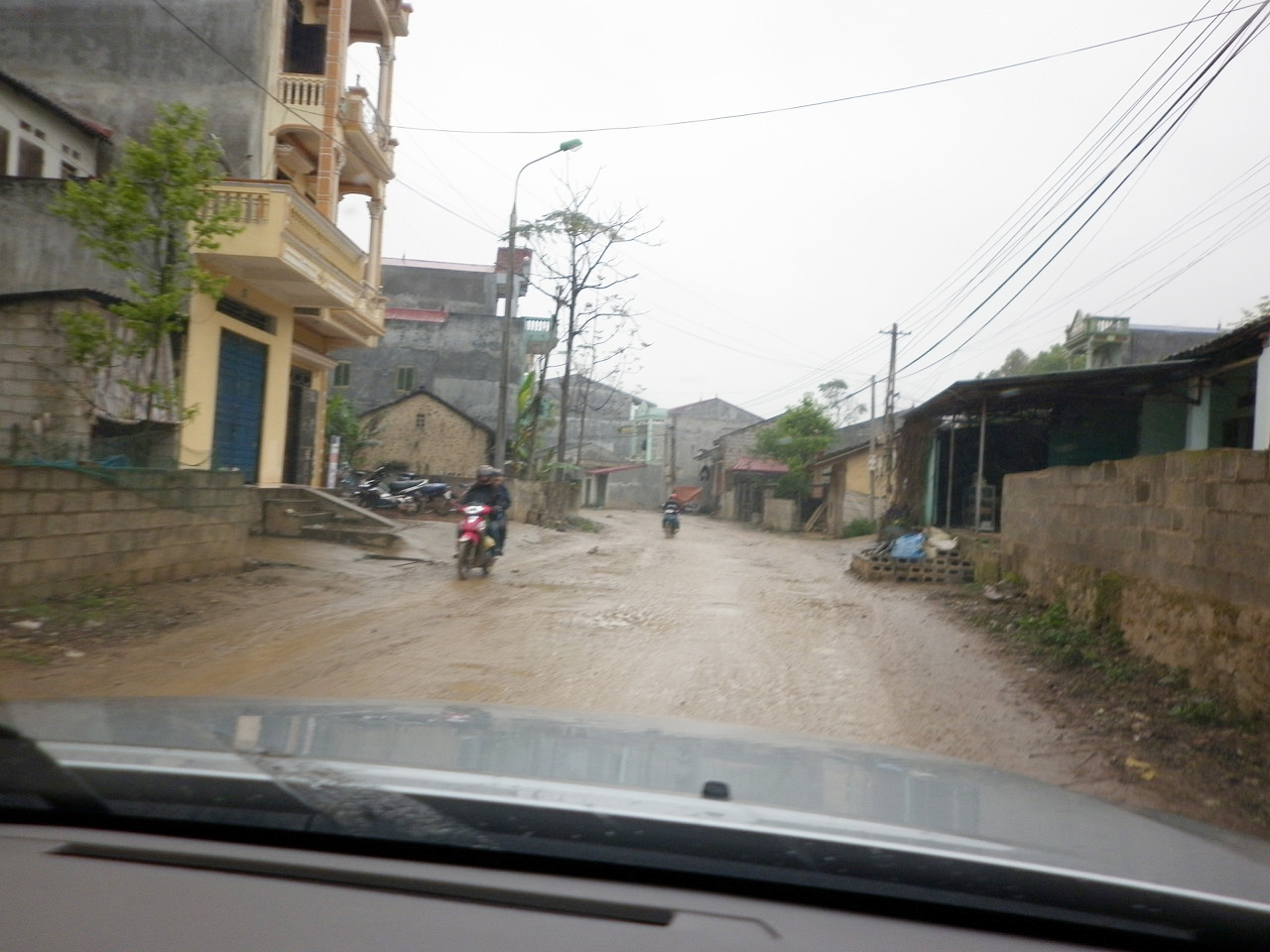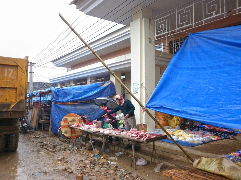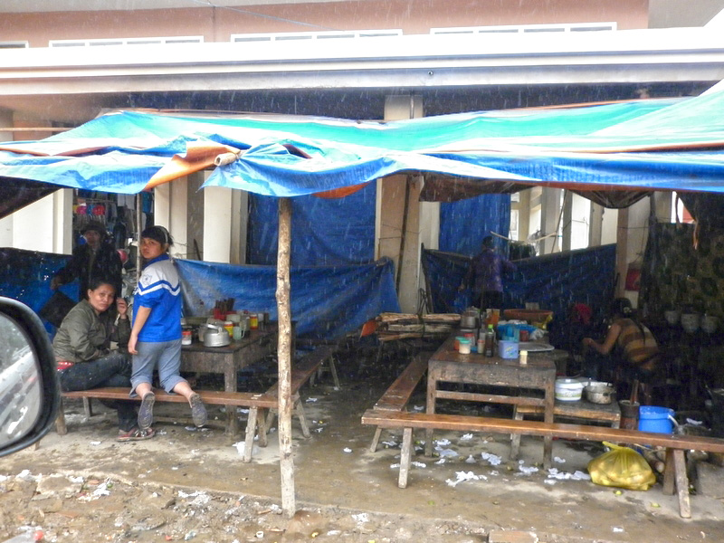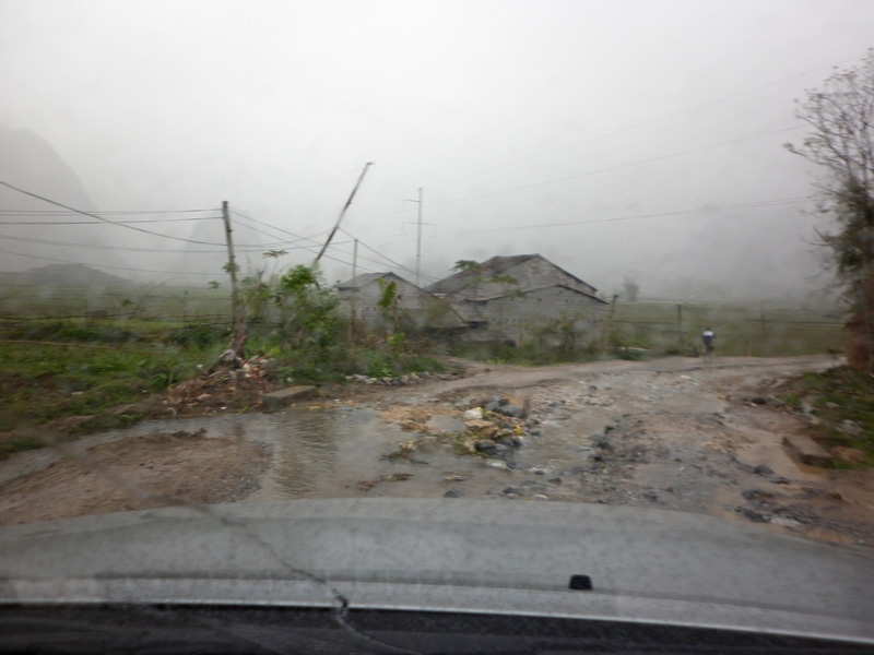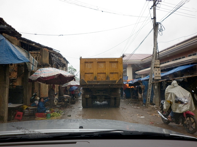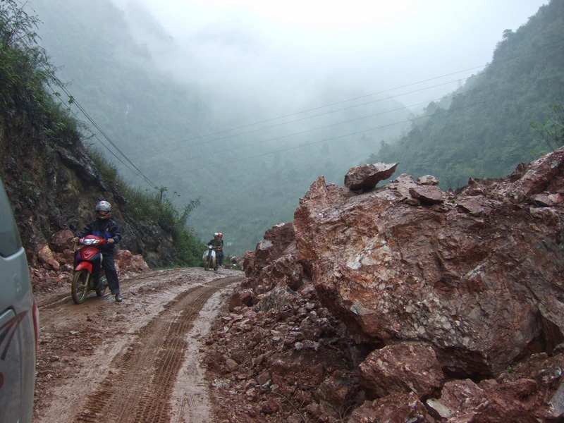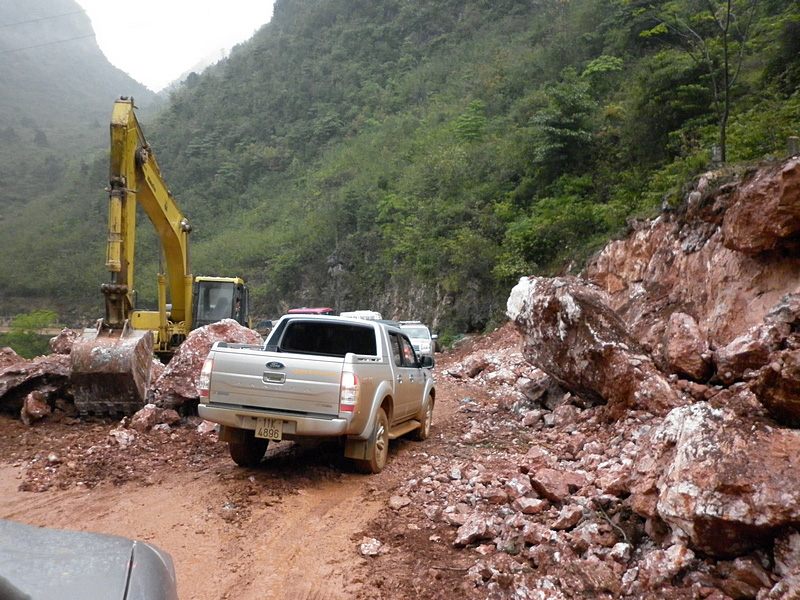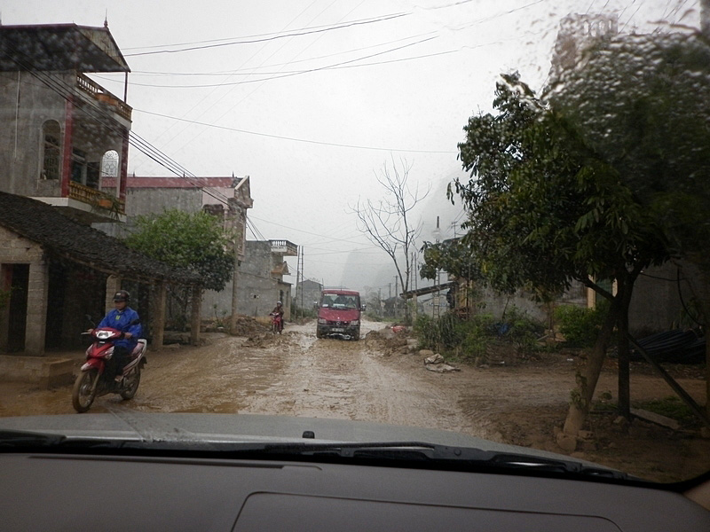 piéton à la semi-remorque, roule dessus. Nous n’avons vu que de la piste de glaise. Nulle part, ce n’est stabilisé. D’après Nam, il faudra encore attendre plusieurs années avant que ces chantiers ne soient terminés. Et quand il pleut (et il pleut souvent) les camions défoncent tout et tout le monde se plante ! |