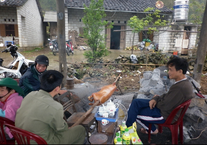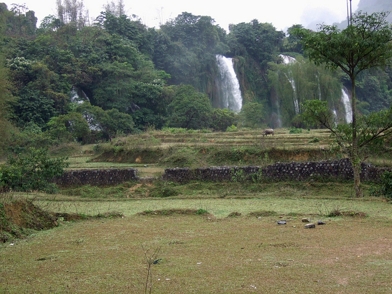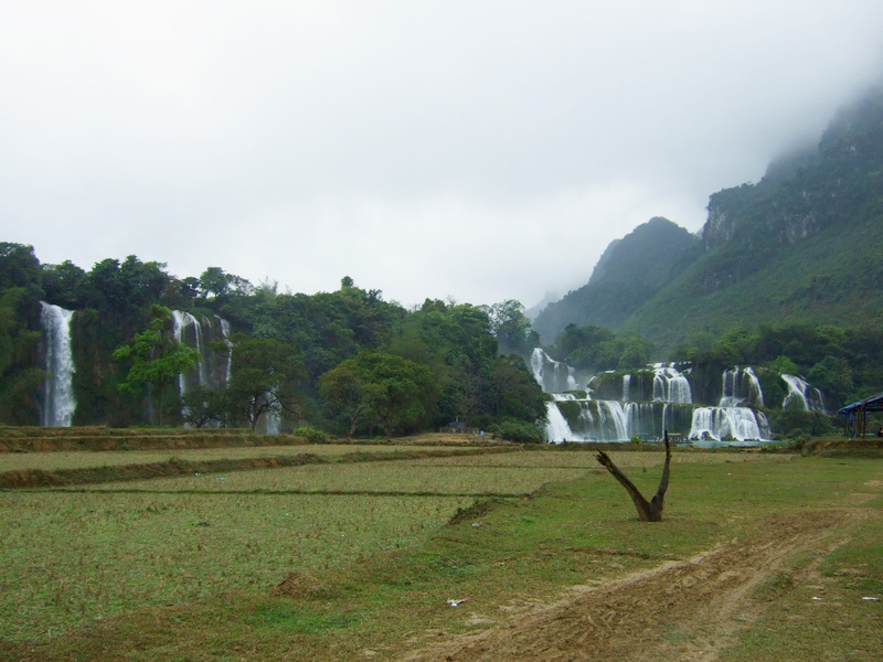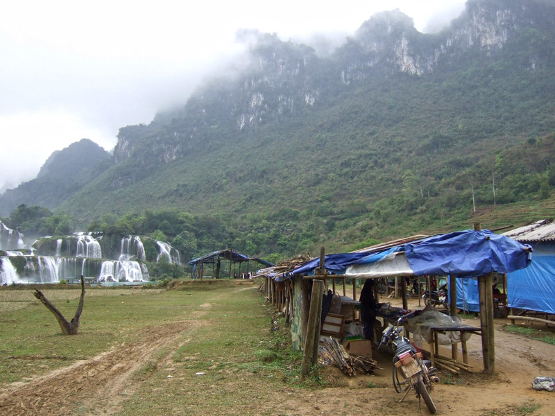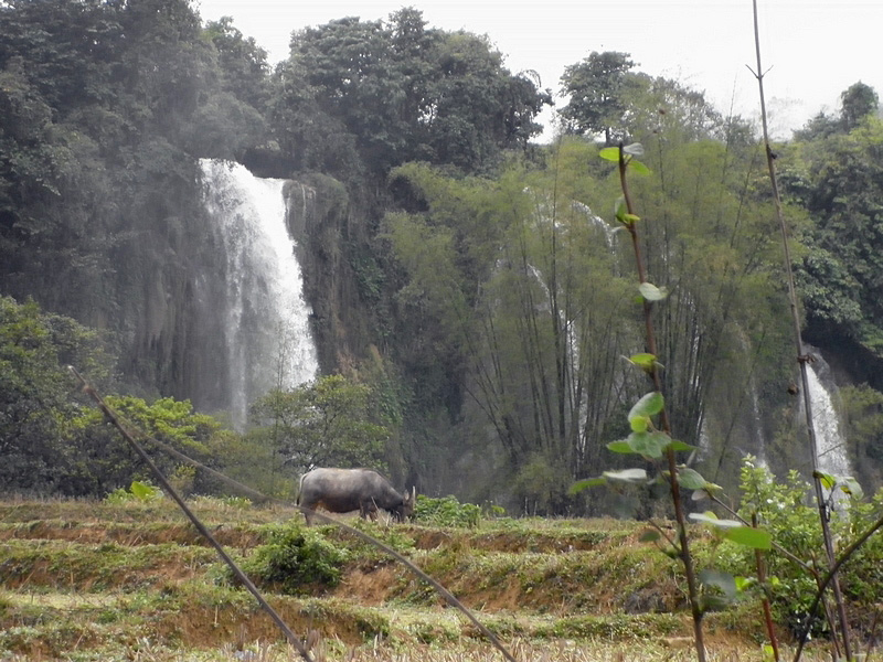 | 3 avril : Cao Bang - Ban Gioc Environ 100 km On est réveillés à 6h par ces p... de haut-parleurs ! Le bonheur continue, il n’y a pas de café à l’hôtel ! On ira le boire en face. C’est sur une terrasse. Le café à peine servi, c’est le groupe électrogène qui démarre ! |