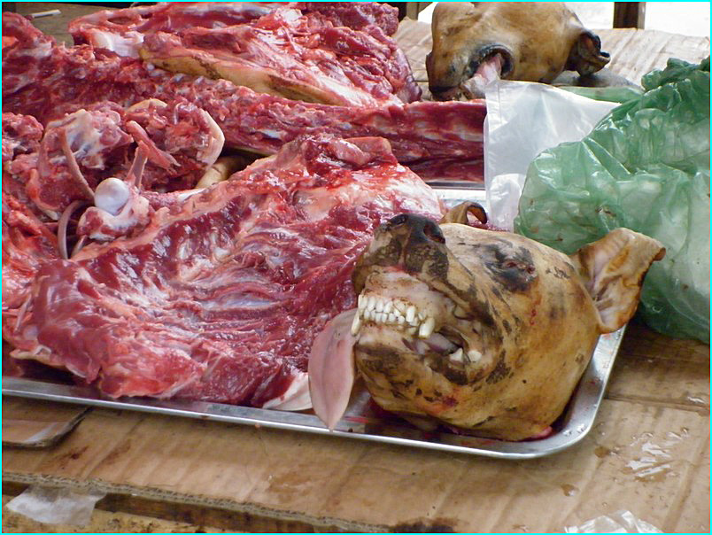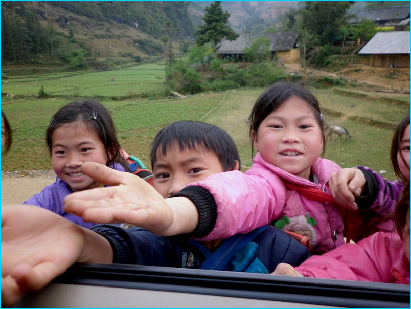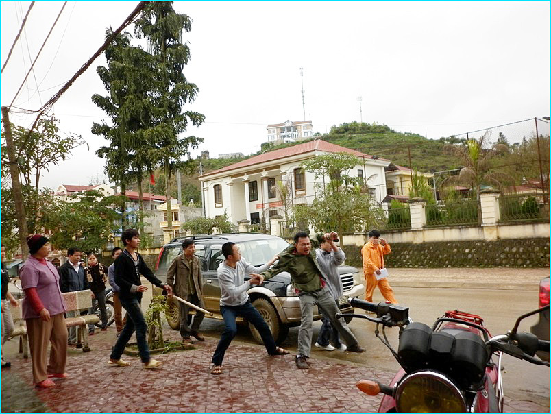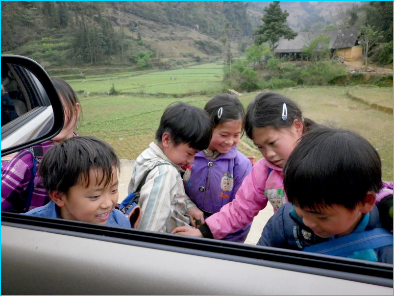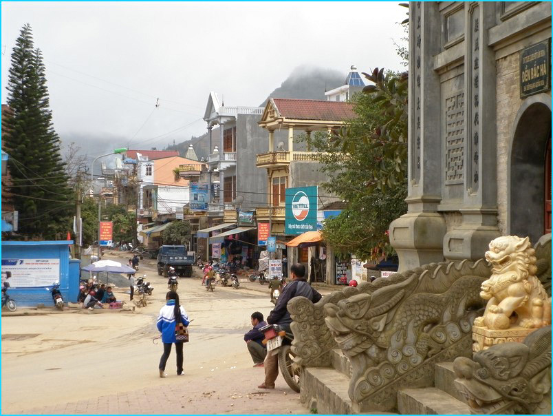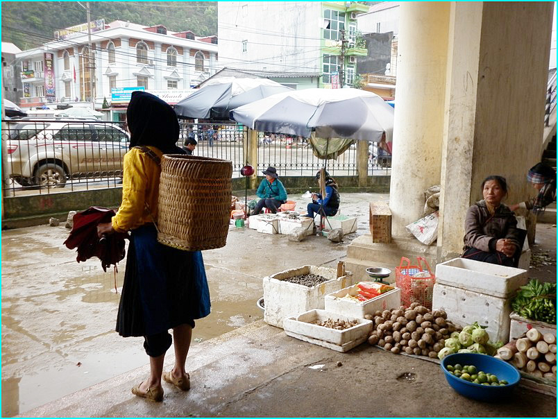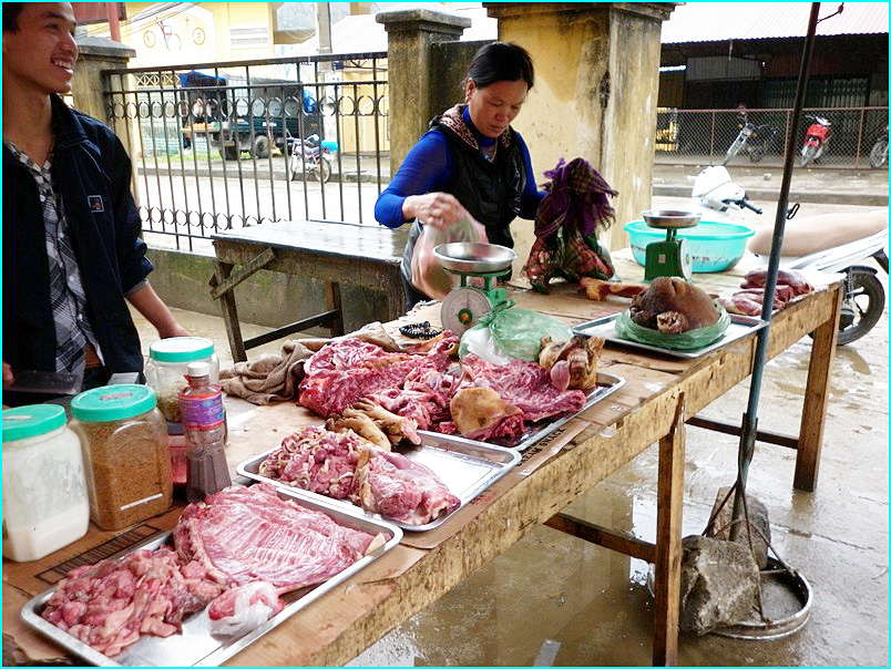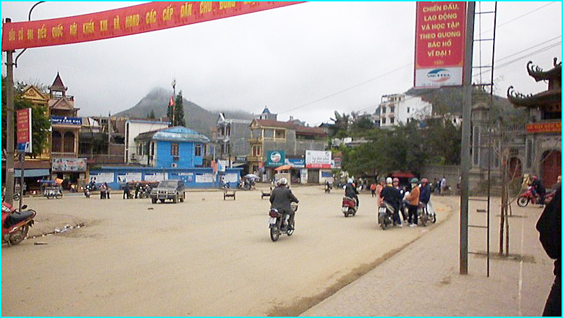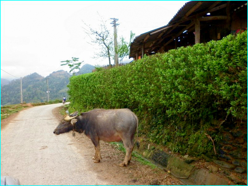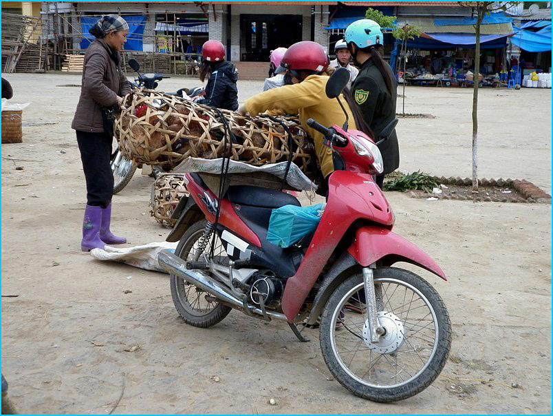 7 avril : Ha Giang - Bac Ha. Environ 200 km Nous prenons notre petit déjeuner au restaurant de l’hôtel (oeufs, vaskiwi), voyons 2 bonshommes qui transportent sur un bambou un cochon qui couine