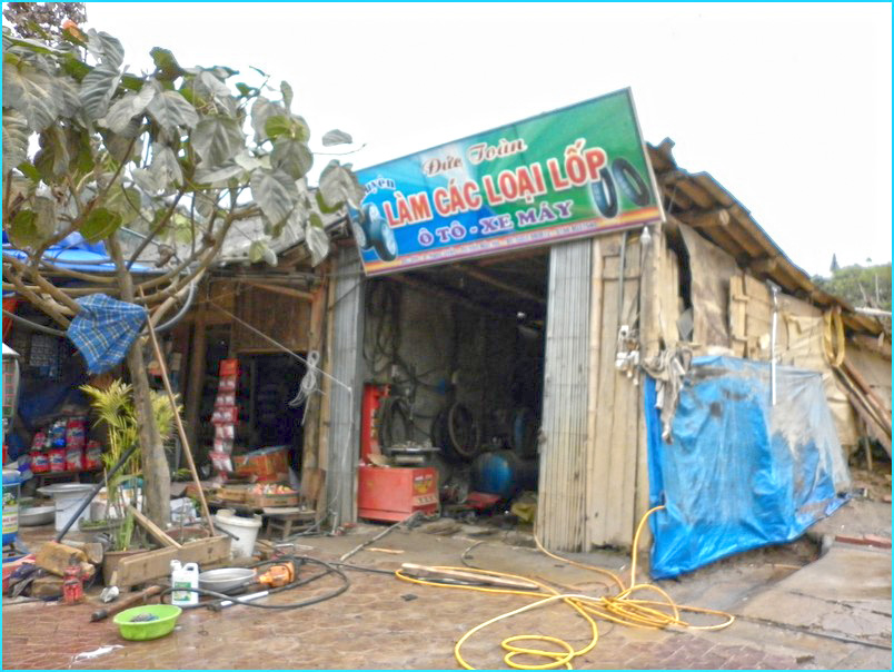 | À l’entrée de Bac Ha se trouve le Massa Pneus local. “Mâ Sa” fait local aussi ! |