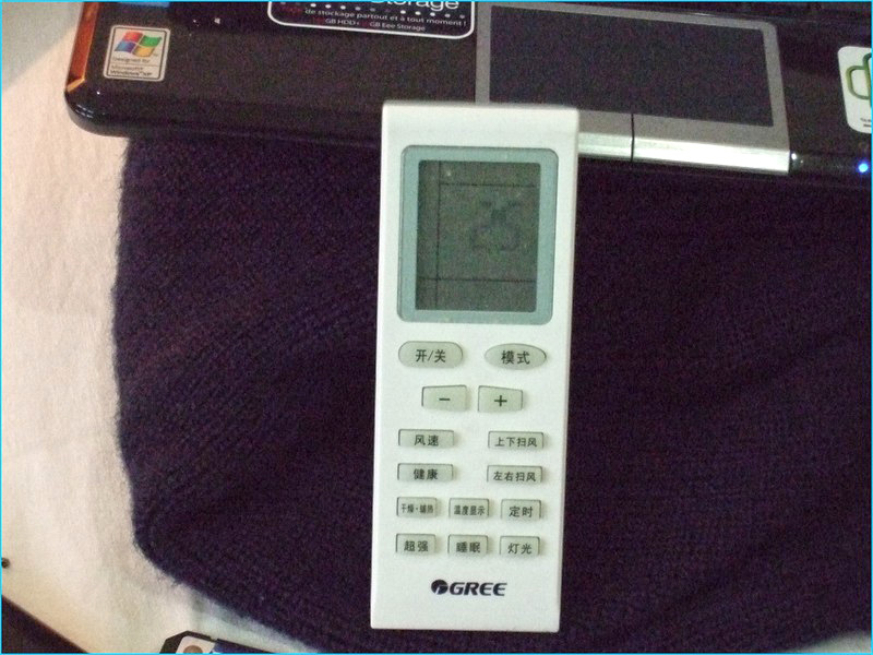 | La télécommande de la clim n’est pas d’un maniement des plus aisés. Et on voudrait bien qu’elle tourne, la clim, car on a toujours un jean à sécher ! |