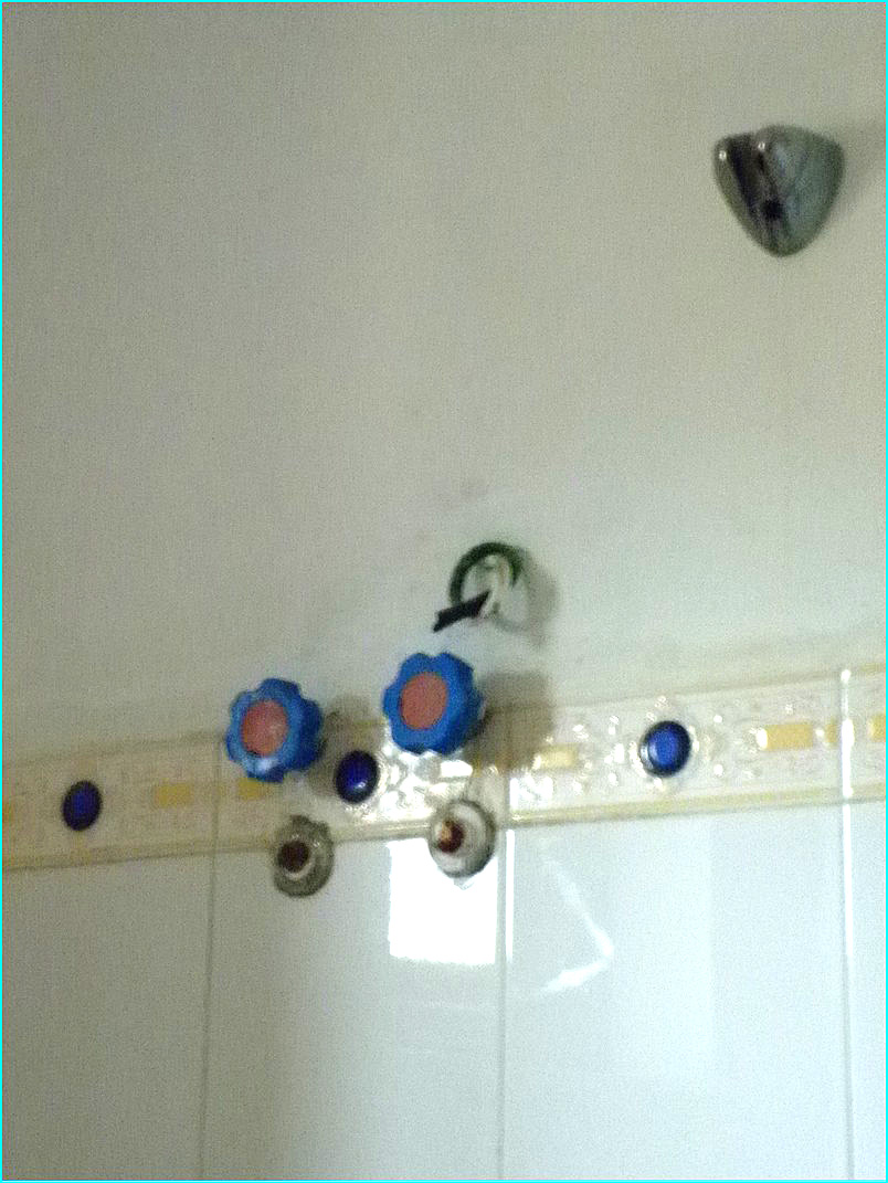 | Les robinets de la douche : il ne faut pas les tripoter les mains mouillées et du savon dans les yeux car il y a risque de claudefrançoision. | |